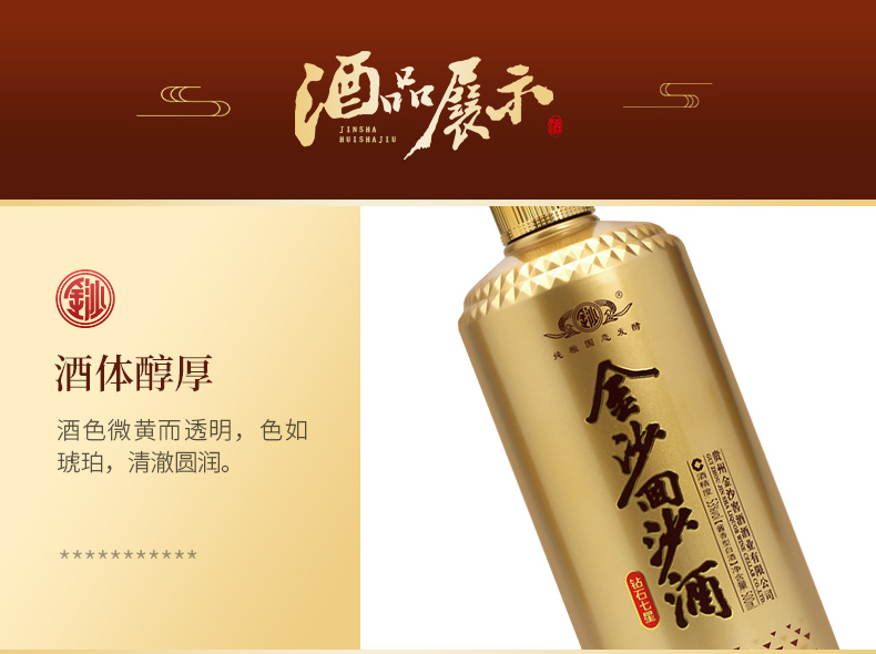 贵州金沙回沙酒经典53度酱香型白酒粮食坤沙酒整箱装500ml*6瓶