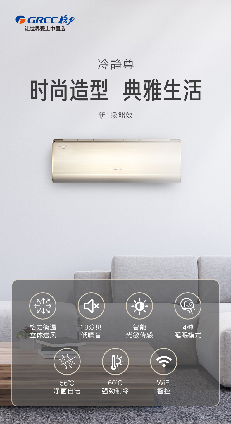 GREE 格力 冷静尊 1匹/1.5匹 变频新国标1级能效 奢华金