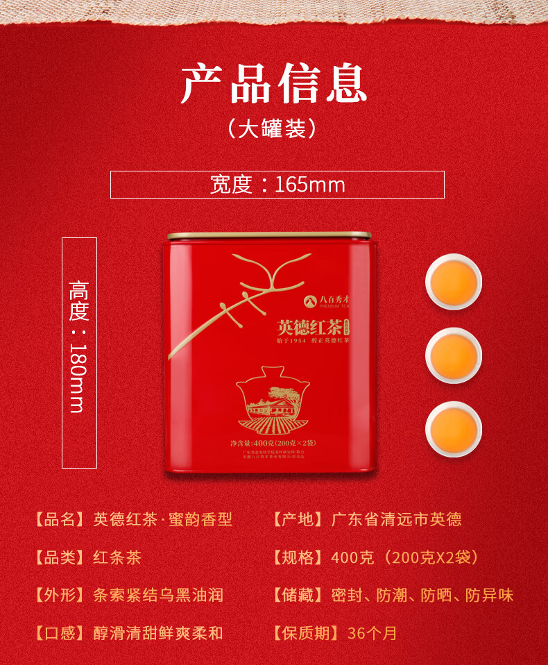 【豪享大份量】八百秀才蜜韵香英德红茶罐装400g