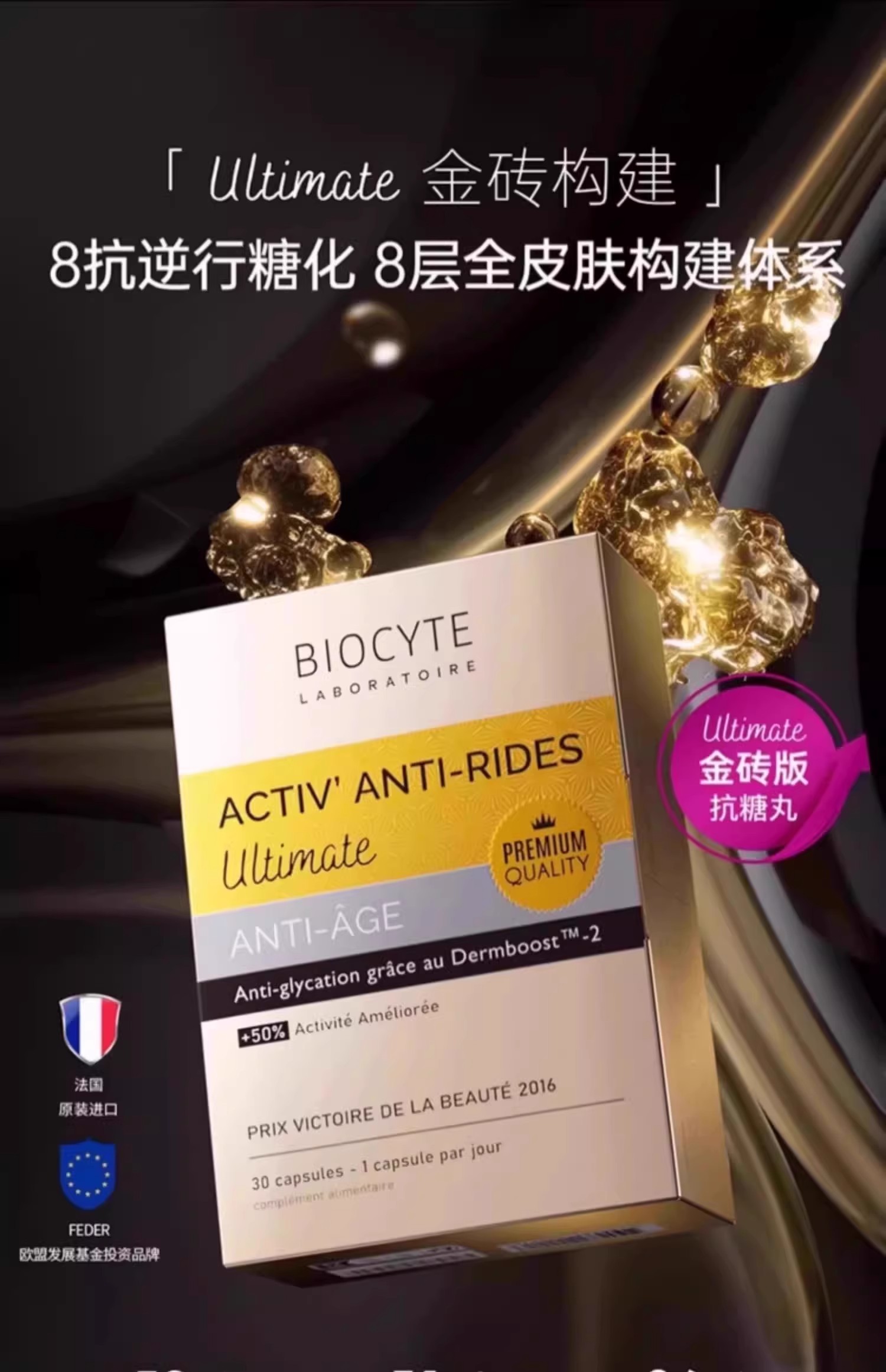 法国Biocyte抗糖丸6代金砖k糖丸q黄淡纹抵御糖化30粒(更新包装)