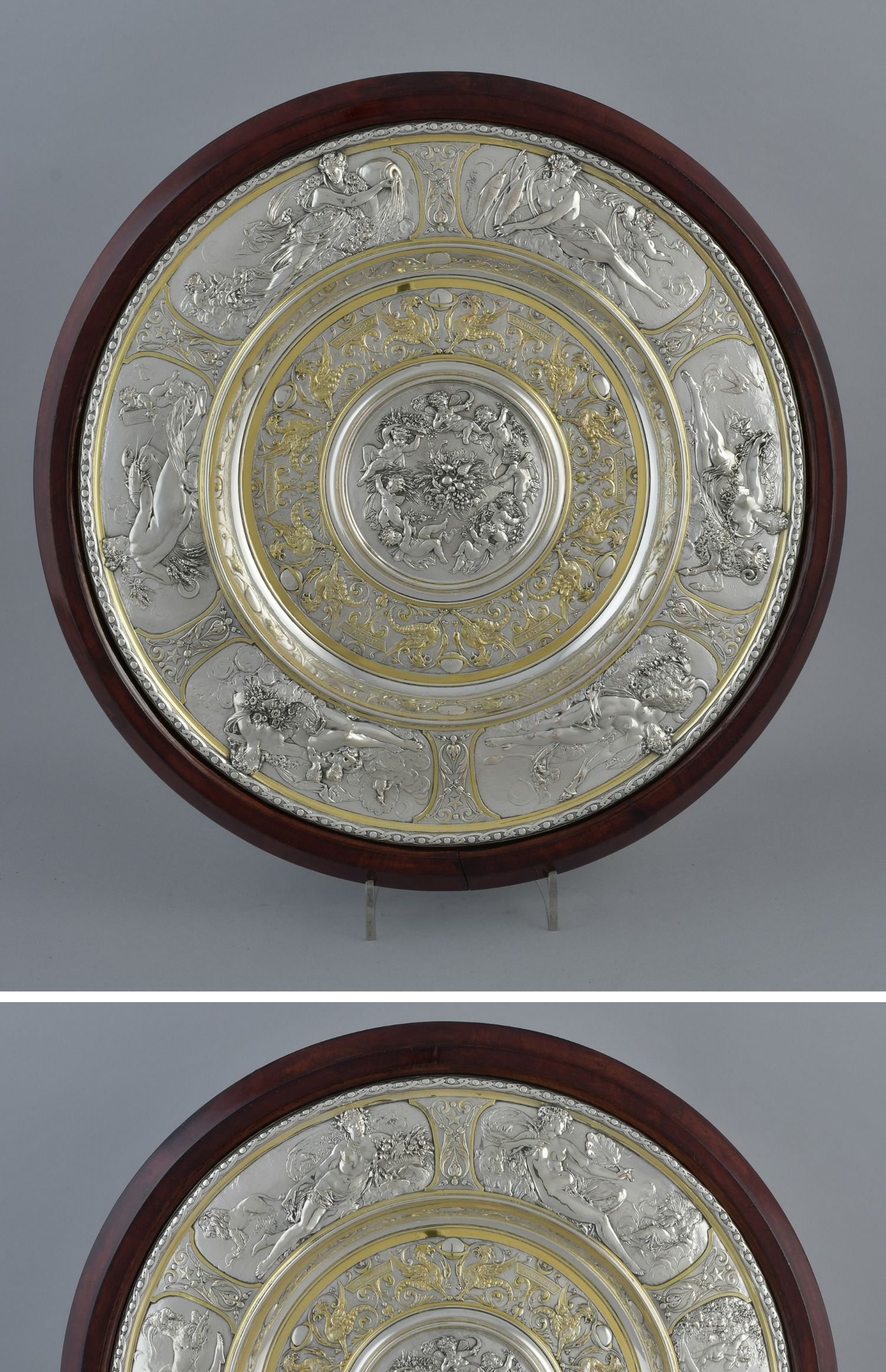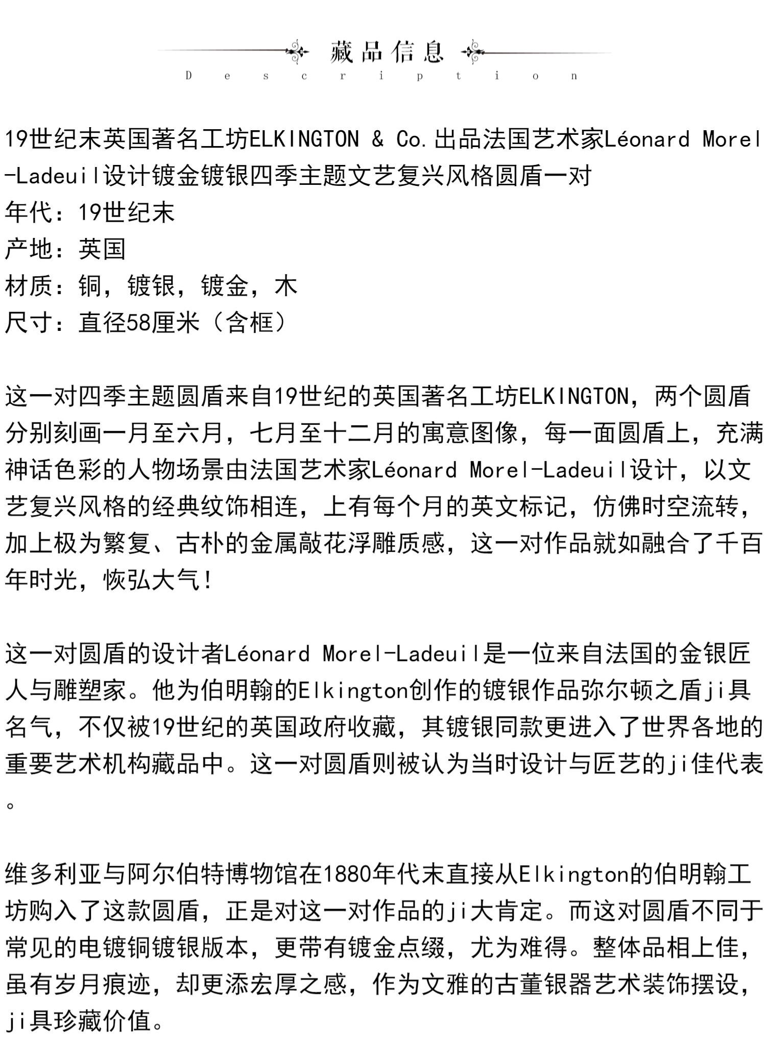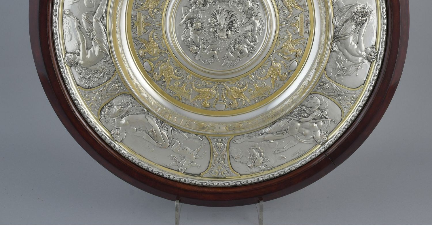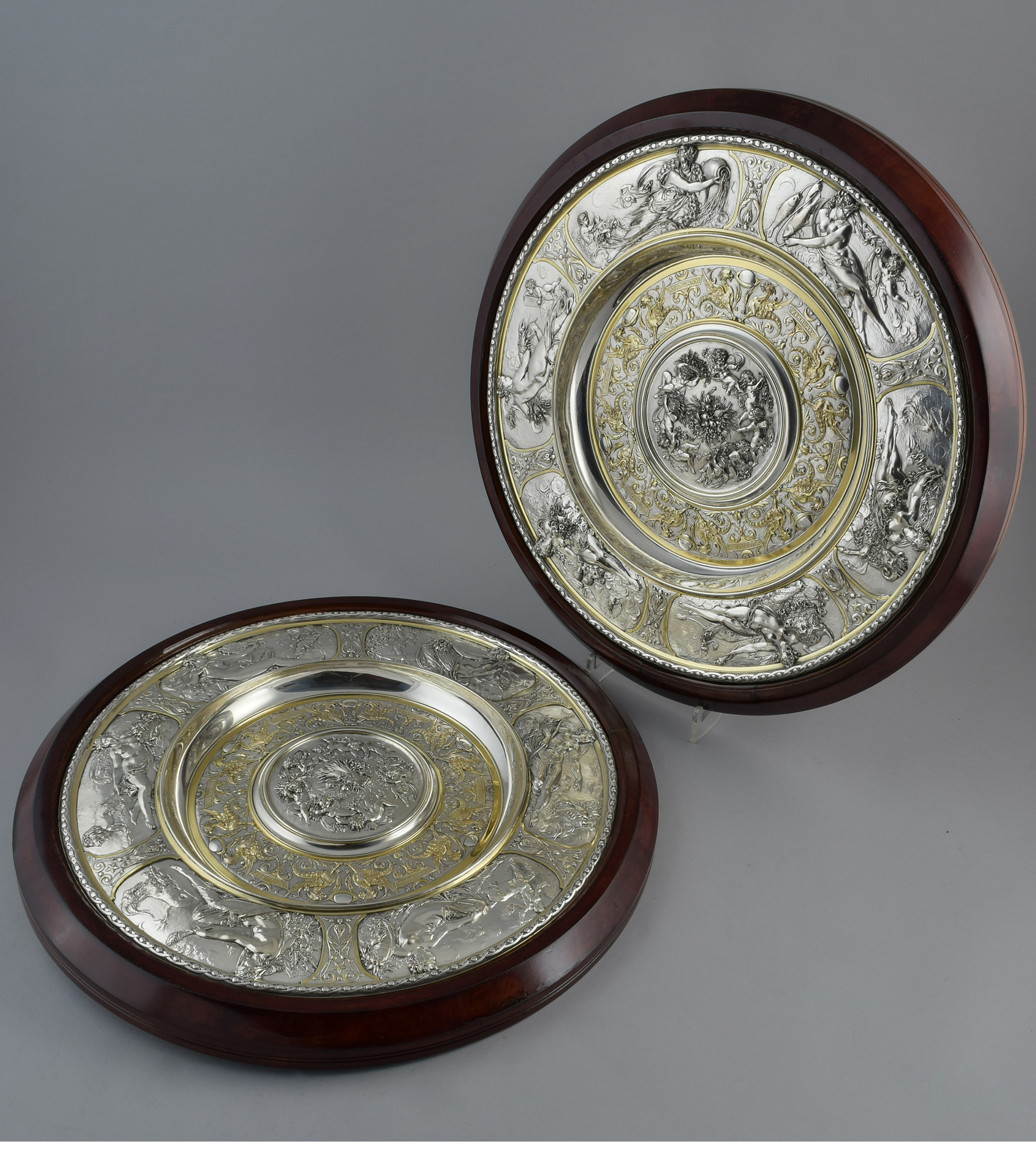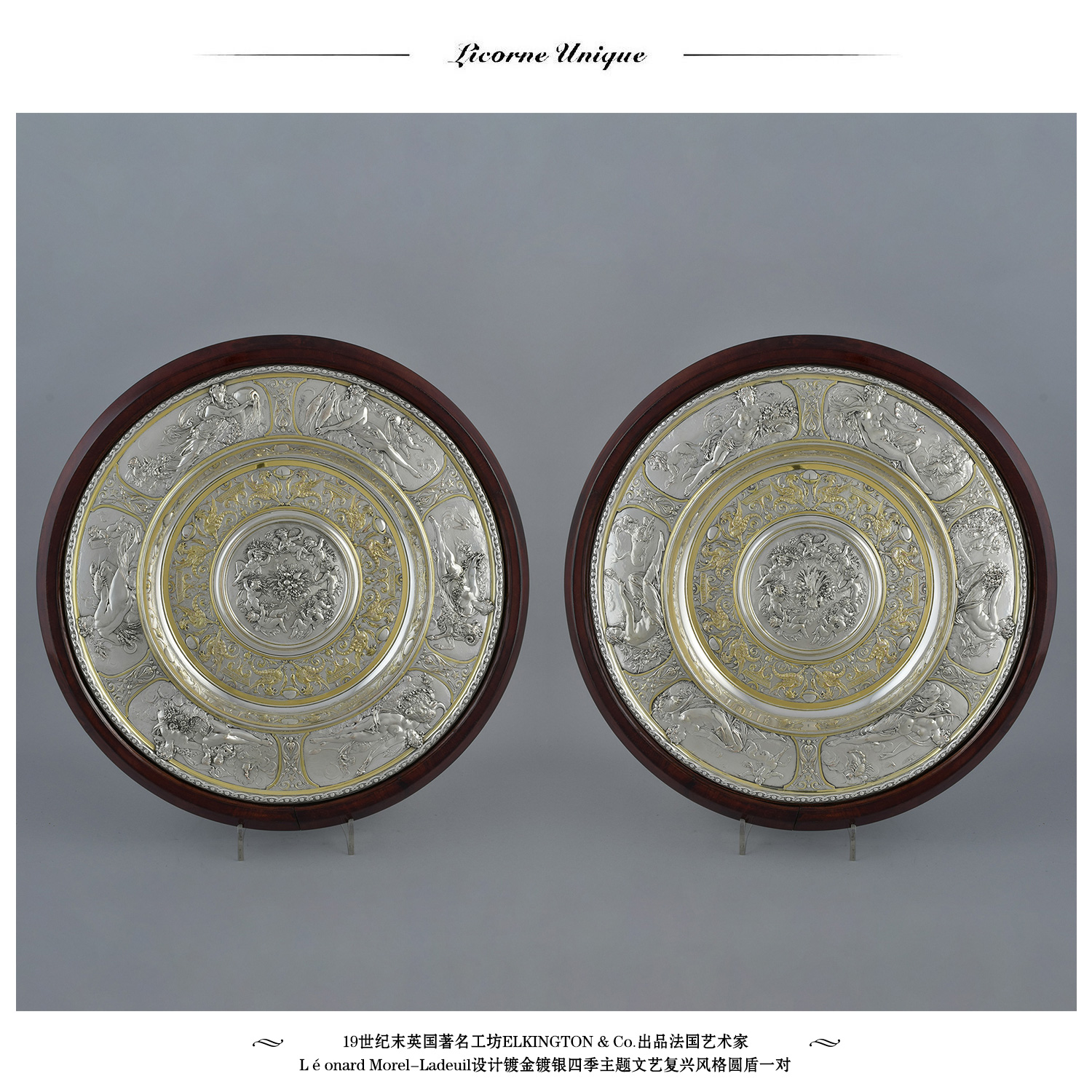 独角鹿西洋古董英国工坊法国艺术家设计镀金银文艺复兴风圆盾一对
