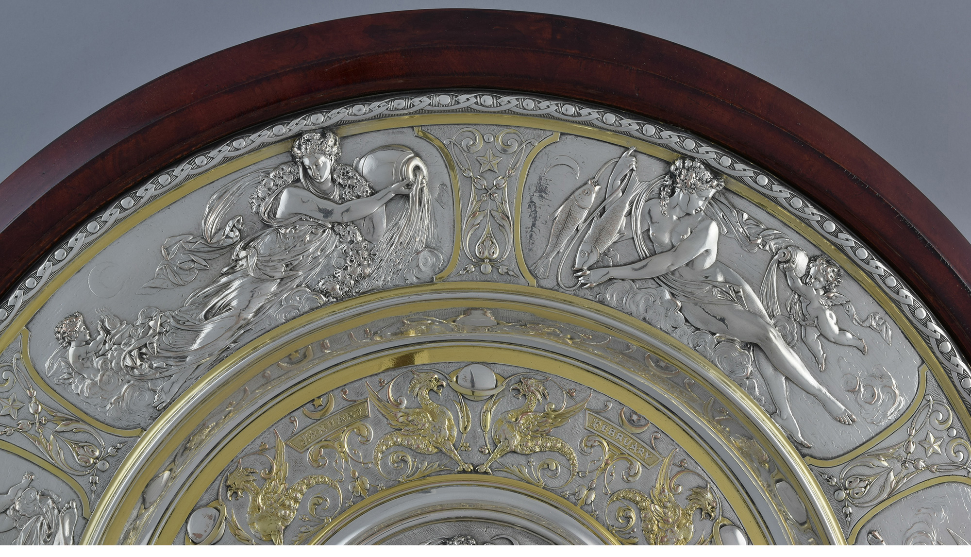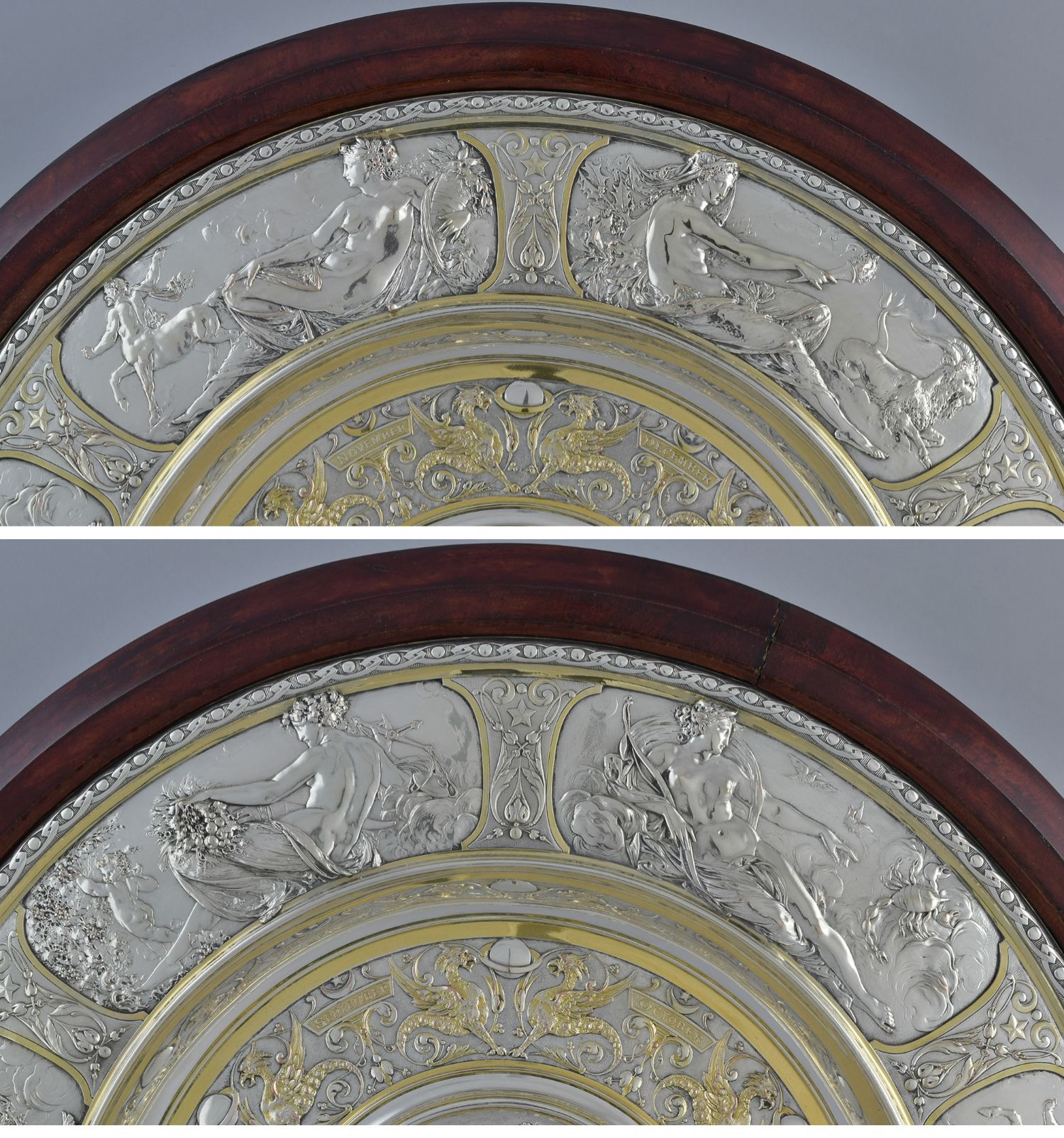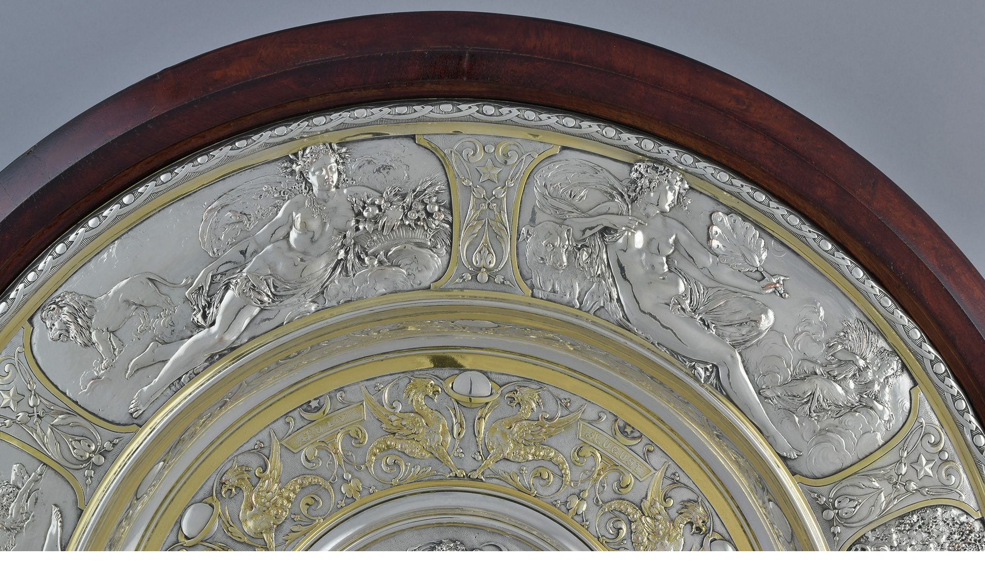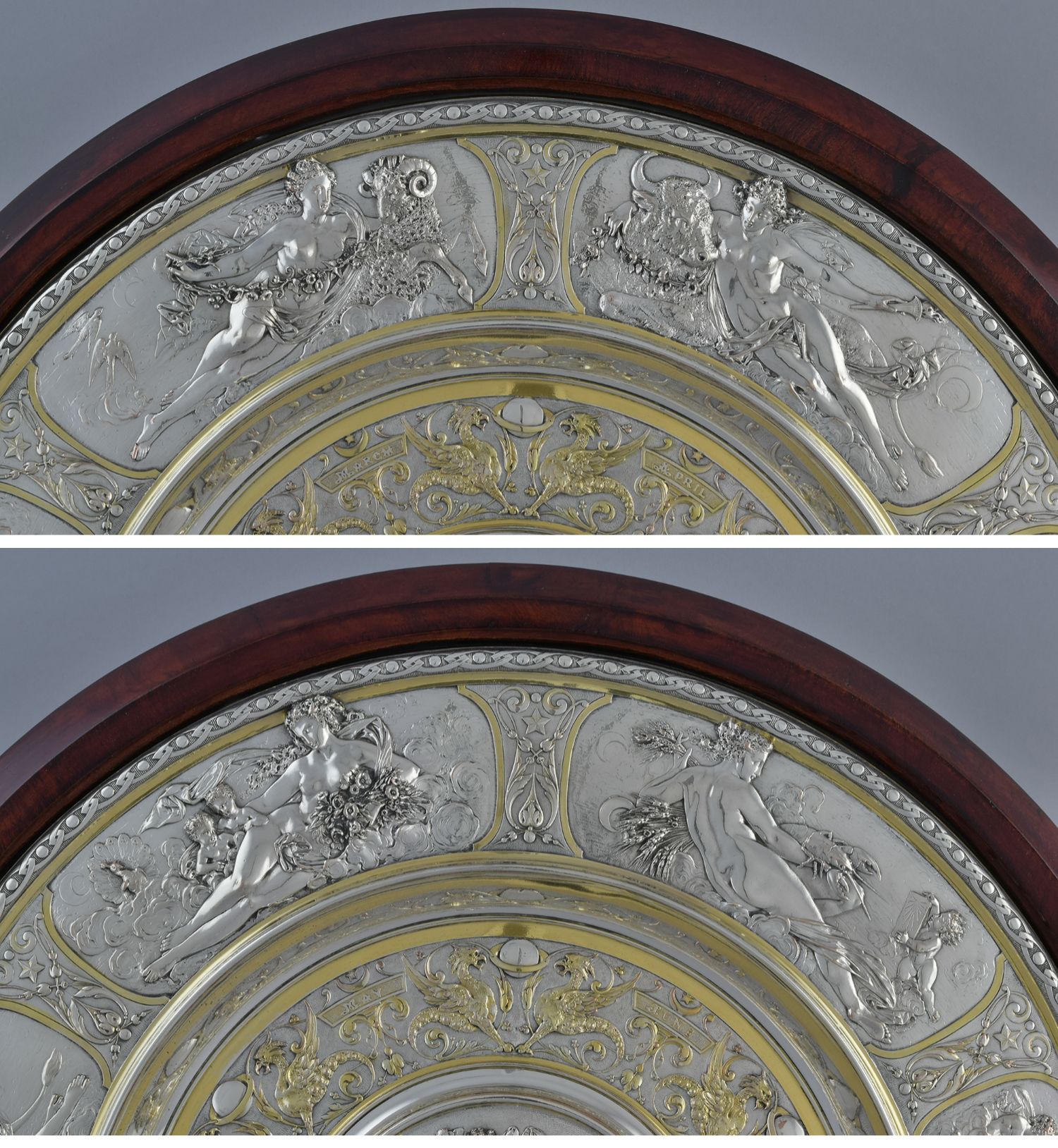 独角鹿西洋古董英国工坊法国艺术家设计镀金银文艺复兴风圆盾一对