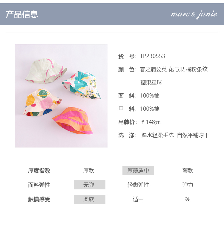 马克珍妮夏装 女童防晒帽渔夫帽 儿童遮阳帽230553