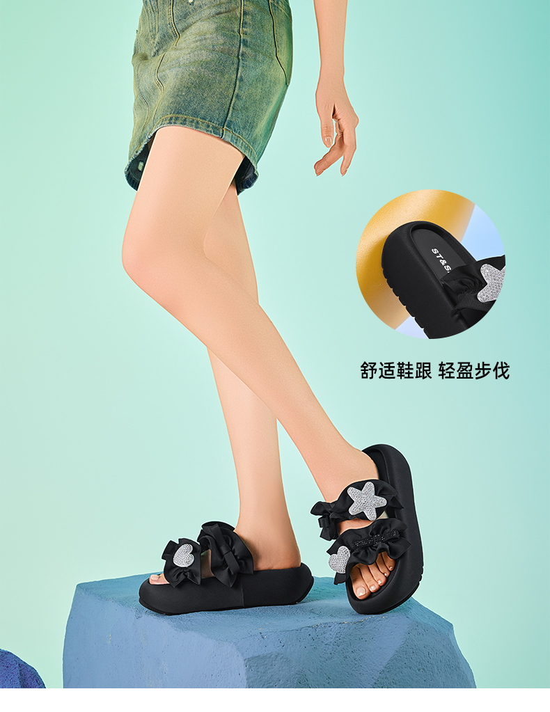星期六甜心水钻装饰厚底沙滩凉拖SSD2110CZ6
