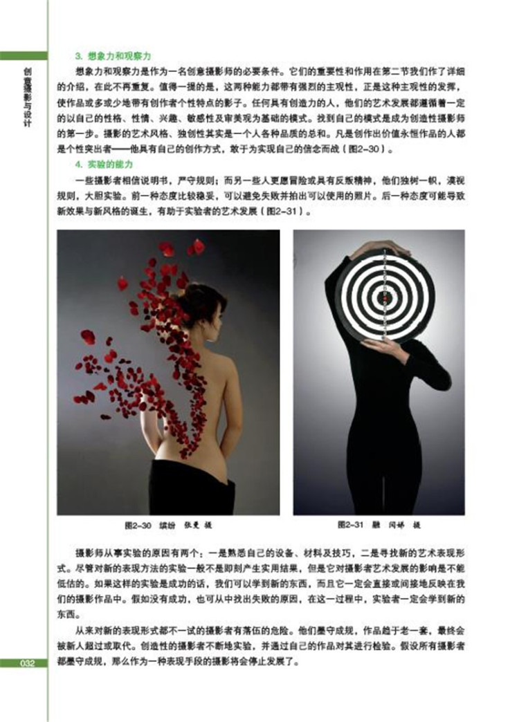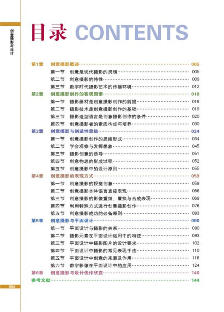 章 创意摄影概述............................................................................................ 005 节 创意是现代摄影的灵魂................................................................. 005 第二节 创意摄影的特性............................................................................ 009 第三节 数字时代摄影艺术的传播环境....................................................... 012 第2章 创意摄影创作的客观因素........................................................................... 018 节 摄影器材是创意摄影创作的前提................................................... 018 第二节 摄影技术是创意摄影创作的基础................................................... 019 第三节 摄影造型语言是创意摄影创作的条件............................................ 020 第四节 创意摄影者的素质构成与培养....................................................... 030 第3章 创意摄影与创造性思维.............................................................................. 034 节 创意摄影创作的思维形式.............................................................. 034 第二节 学会观察与发挥想象..................................................................... 045 第三节 摄影创意的诱导............................................................................ 051 第四节 创意构思的形成过程..................................................................... 052 第五节 创意摄影中的设计原则................................................................. 055 第4章 创意摄影的表现方式.................................................................................. 059 节 创意摄影的视觉创意..................................................................... 059 第二节 创意摄影本体语言直接表现.......................................................... 066 第三节 创意摄影的影像重组、置换与合成表现......................................... 069 第四节 利用特殊方式进行创意摄影创作................................................... 076 第五节 创意摄影成功的原则.............................................................. 083 第5章 创意摄影与平面设计.................................................................................. 090 节 平面设计与摄影的关系................................................................. 090 第二节 摄影元素在平面设计运用中的特征................................................ 093 第三节 平面设计中摄影图片的设计要求................................................... 102 第四节 平面设计中摄影的常见表现手法................................................... 110 第五节 平面设计中创意的来源及作用....................................................... 116 第六节 数字影像在平面设计中的应用....................................................... 124 第6章 创意摄影与设计佳作欣赏........................................................................... 140 参考文献.................................................................................................................. 144 |