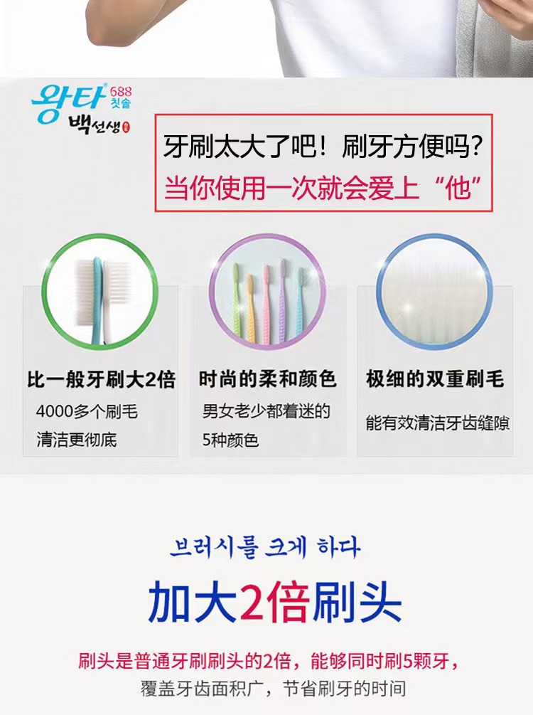 【中欧班列精选8支】韩国王打牙刷 原装进口王打大刷头双层牙刷 1支*8/盒