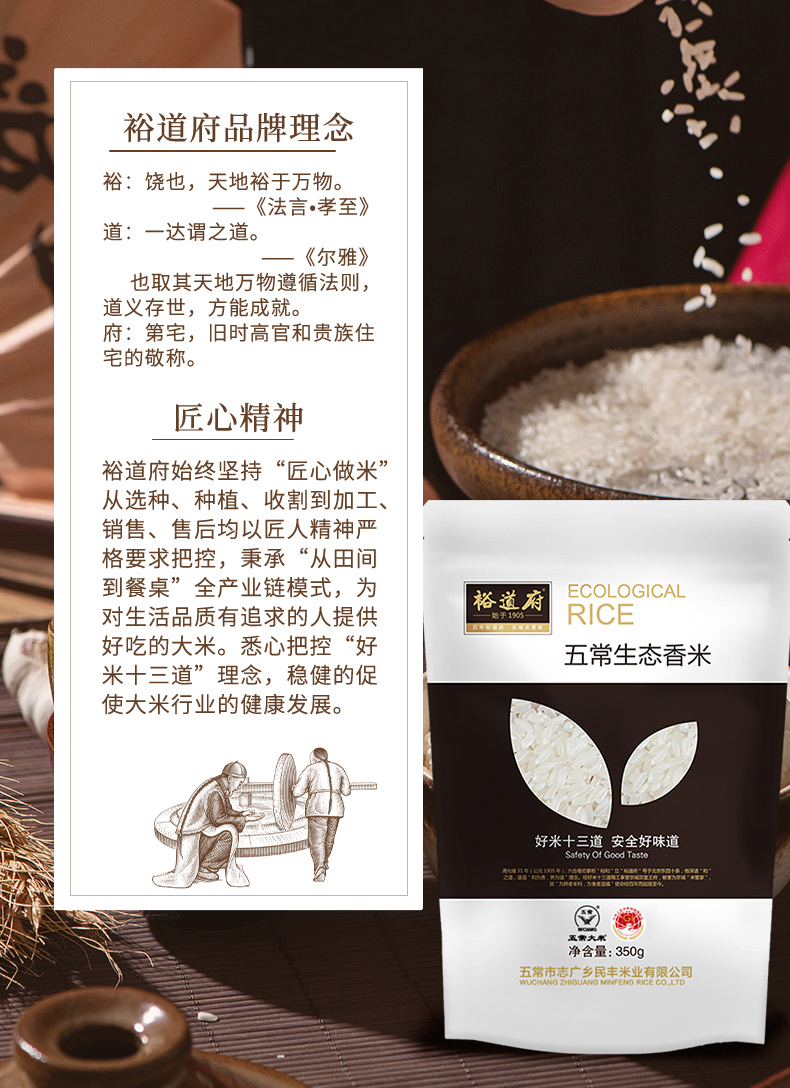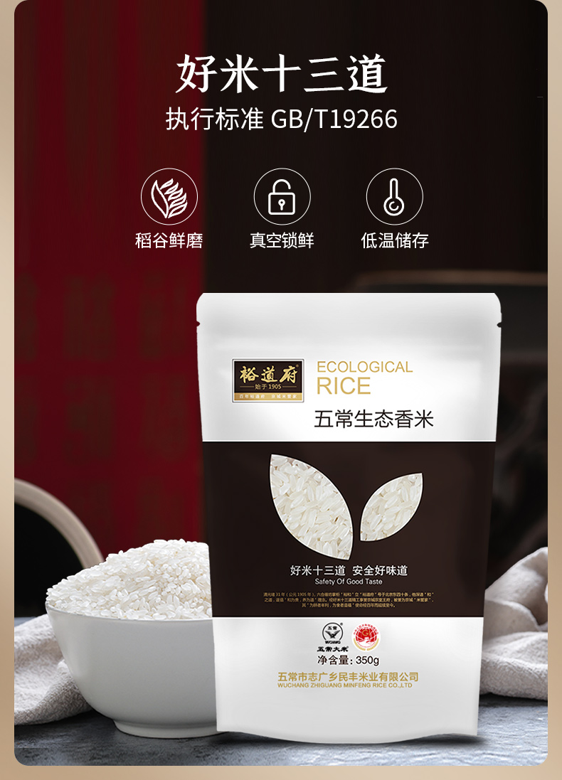 裕道府 五常生态大米350克袋装 口感香甜 醇香 有嚼劲