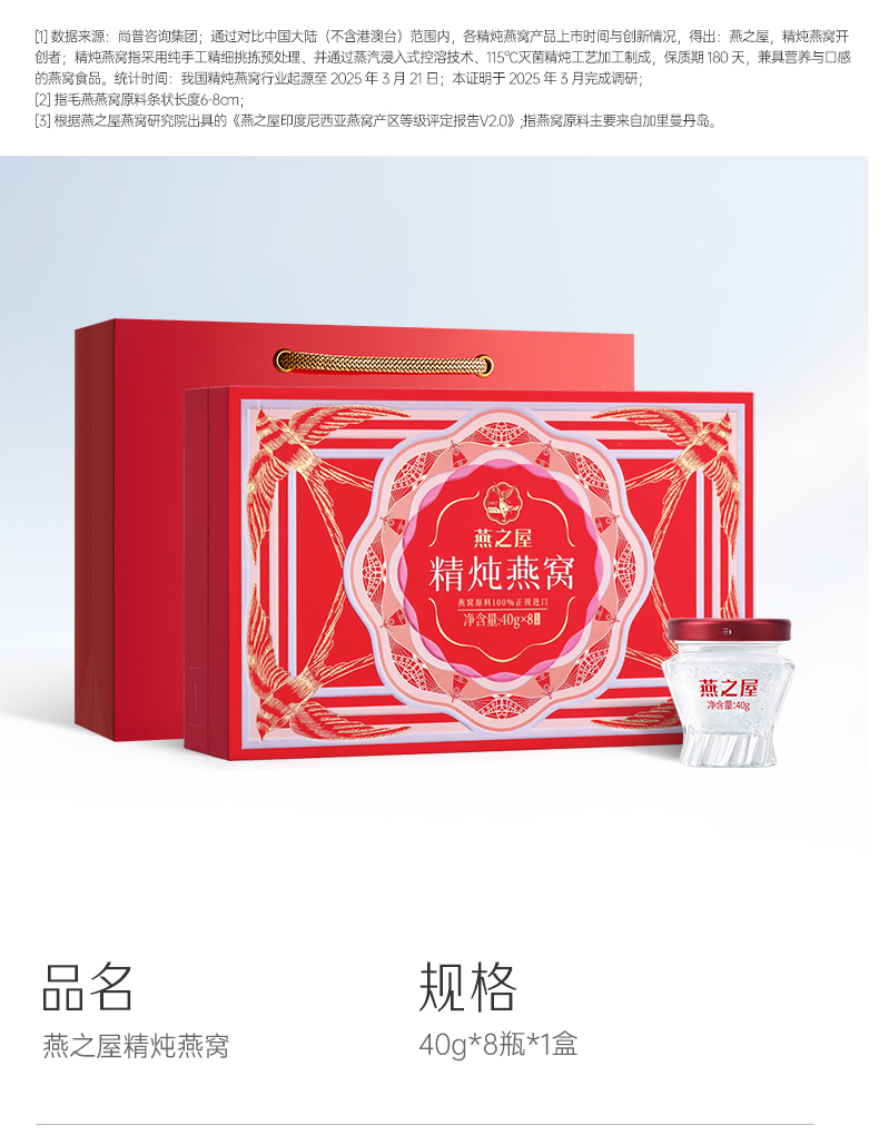 燕之屋燕窝鲜炖即食燕窝精炖燕窝40g*8瓶 送礼推荐 营养滋养【送礼推荐】