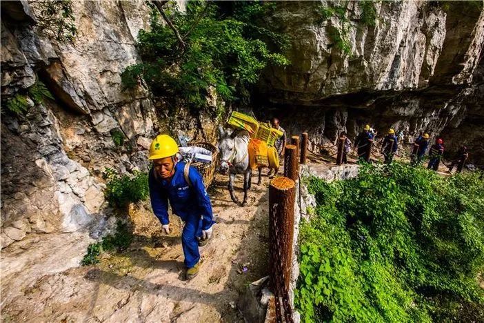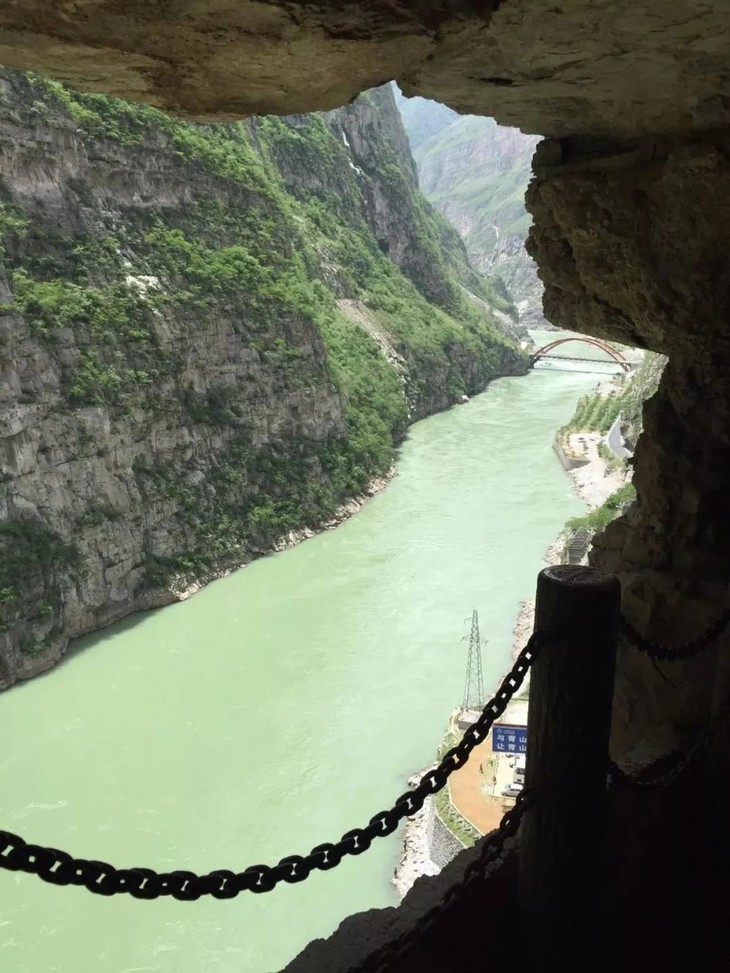 直到上世纪60年代修筑成昆铁路时,工程队用钢板在“一线天”处焊起了一道道钢梯子,古路村的人才结束了在树藤上“荡秋千”往来的历史。2003年,政府出钱,村民出力,在绝壁上凿出了一条路,几十厘米宽的路,他们叫它大路,也有人称为骡马道。