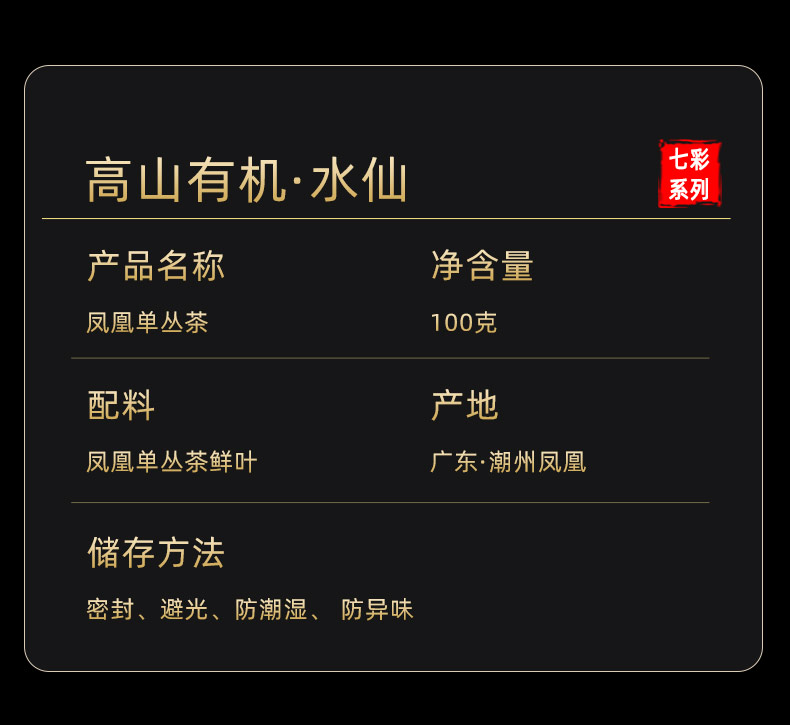 天池单丛 1392 乌岽水仙 凤凰单枞茶七彩系列100g*2礼盒装