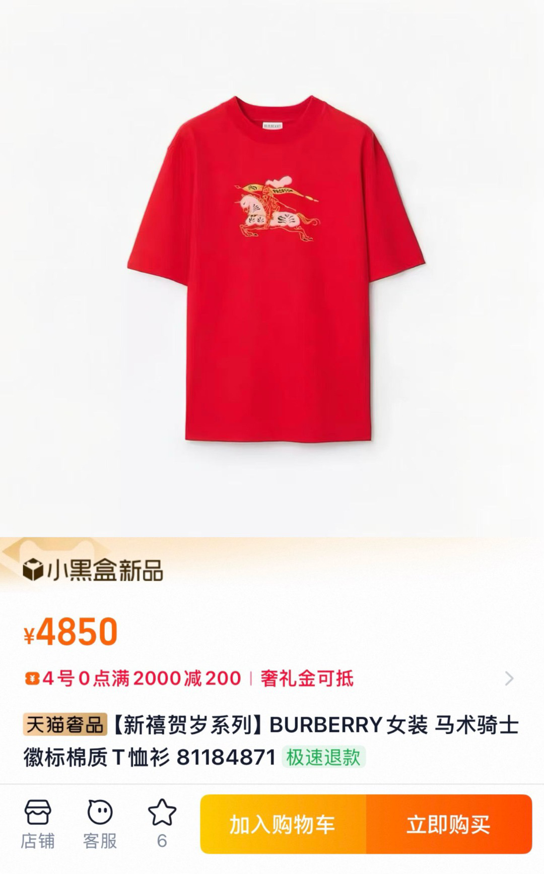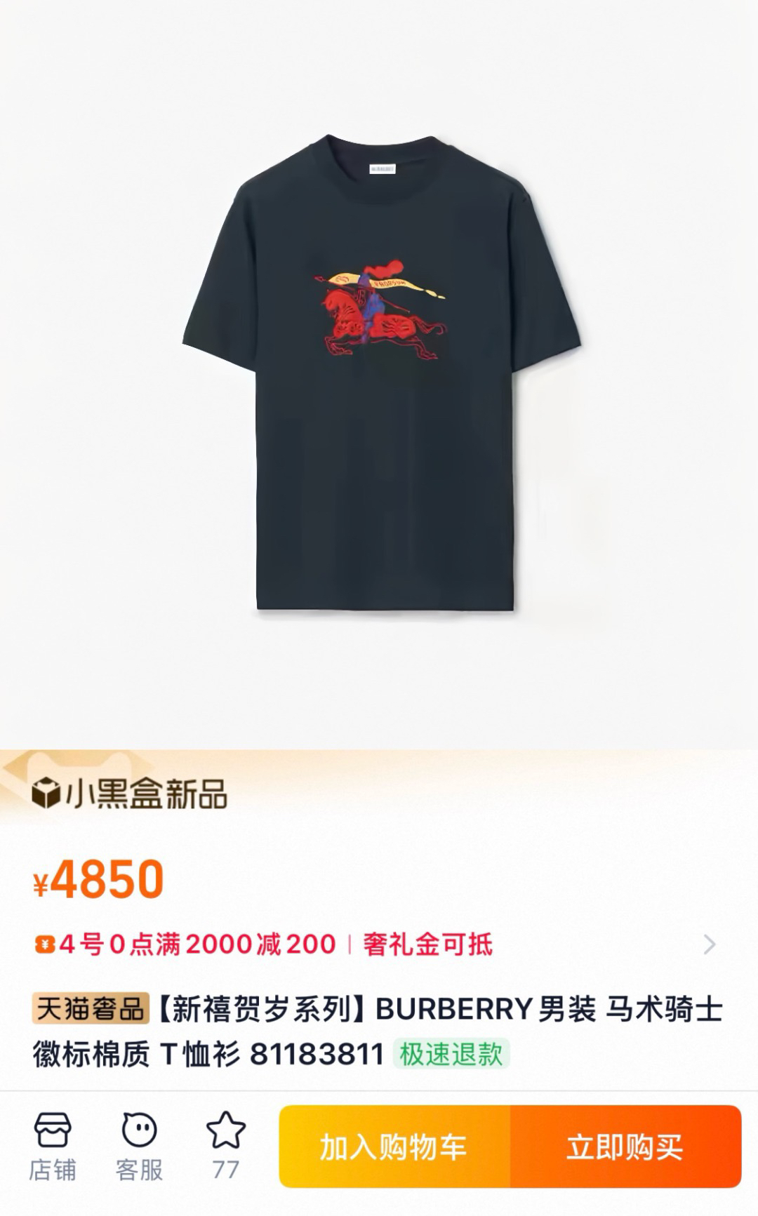吴磊同款Burberr*y新禧贺岁🐎战马骑士T恤 太会玩了!