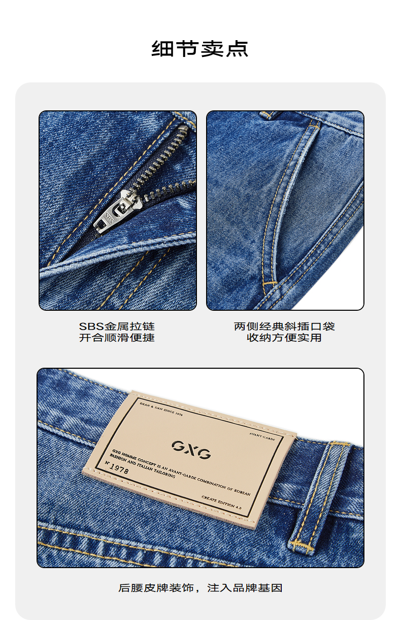 GXG男装 直筒渐变设计水洗牛仔裤休闲裤弹力长裤子 2025夏季热卖
