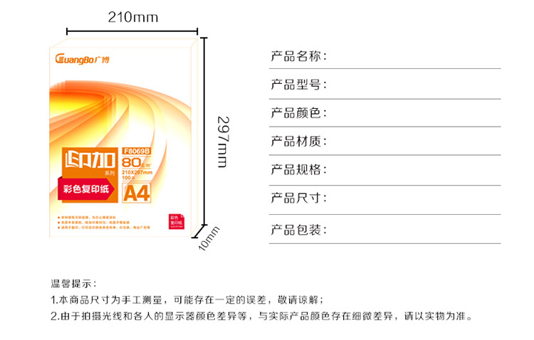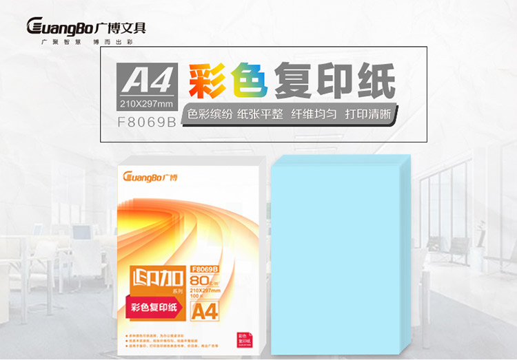 广博(GuangBo)A4彩色复印纸80g浅蓝印加系列手工折纸打印纸 儿童剪纸 彩色卡纸 桌牌台卡纸100张/包F8069B