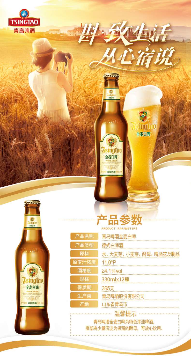 青岛啤酒 全麦白啤精酿啤酒 包邮