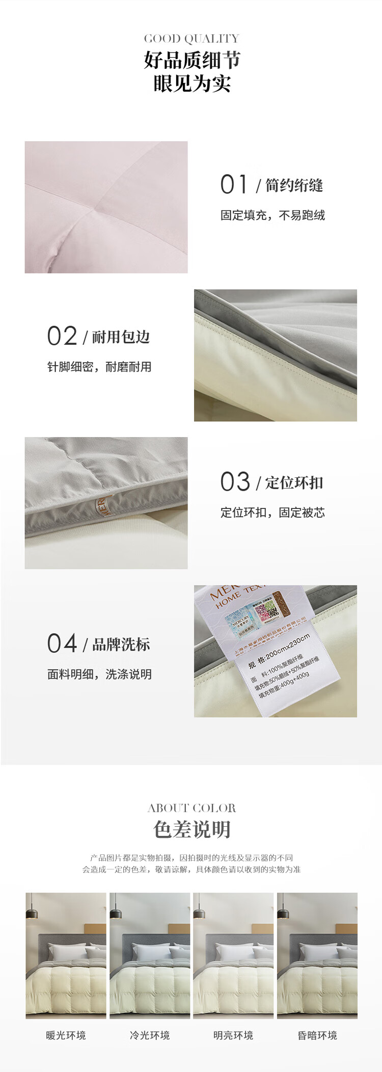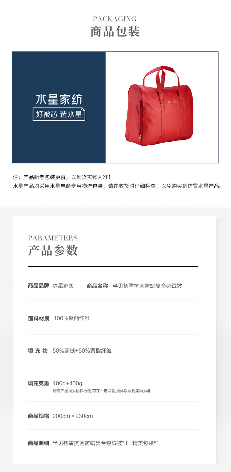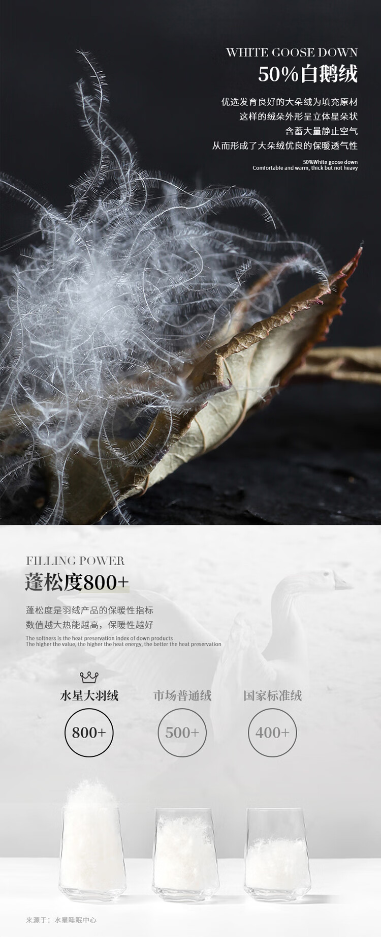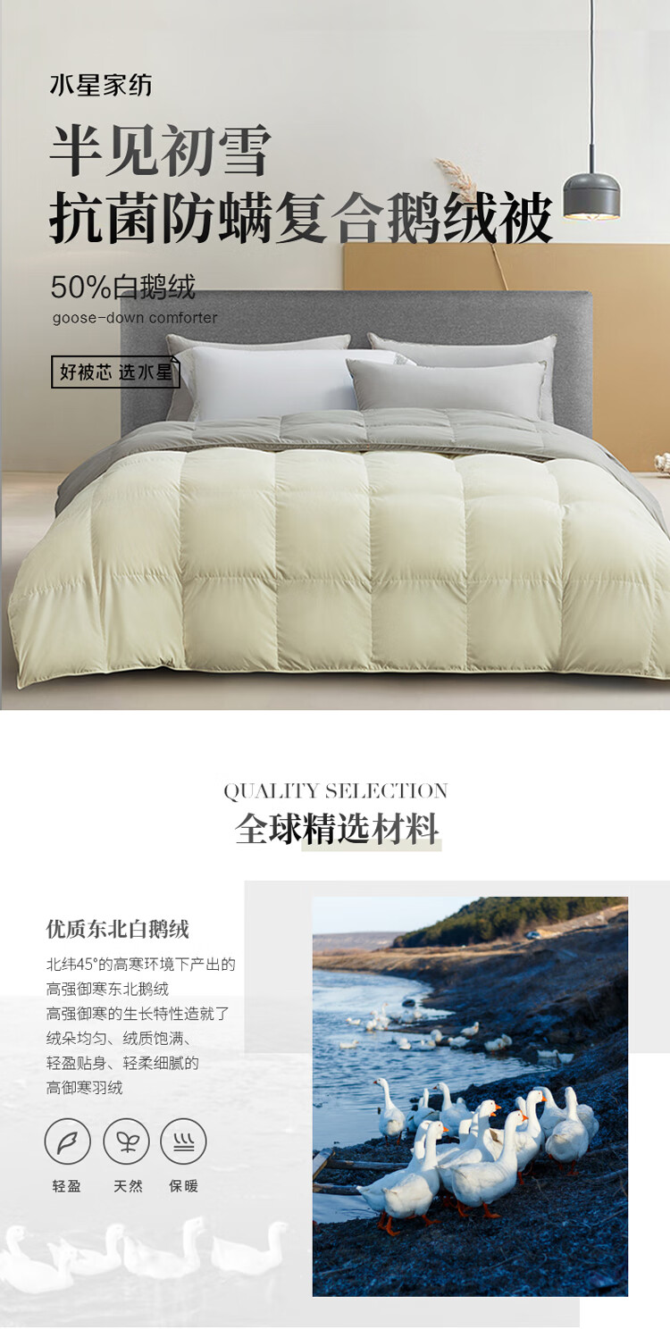 【分仓直发包邮】水星家纺半见初雪抗菌防螨复合鹅绒被129249
