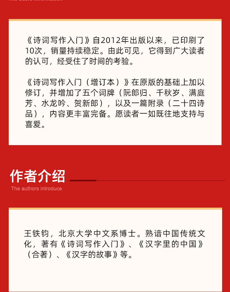 《诗词写作入门》自2012年出版以来,已印刷了10次,销量持续稳定。由此可见,它得到广大读者的认可,经受住了时间的考验。