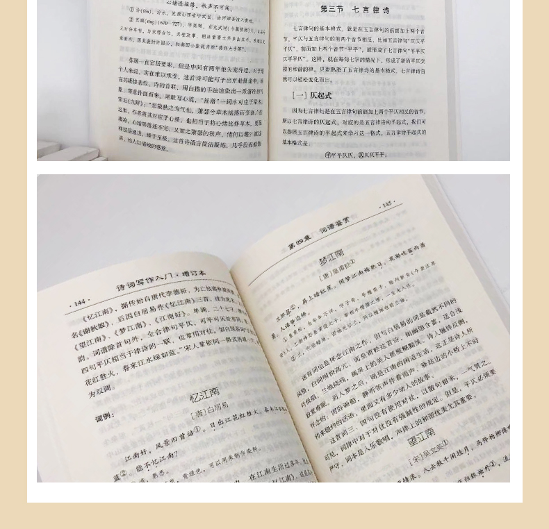 《诗词写作入门(增订本)》在原版的基础上加以修订,并增加了五个词牌(阮郎归、千秋岁、满庭芳、水龙吟、贺新郎),以及一篇附录(二十四诗品),内容更丰富完备。愿读者一如既往地支持与喜爱。