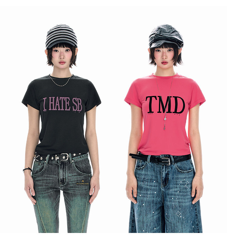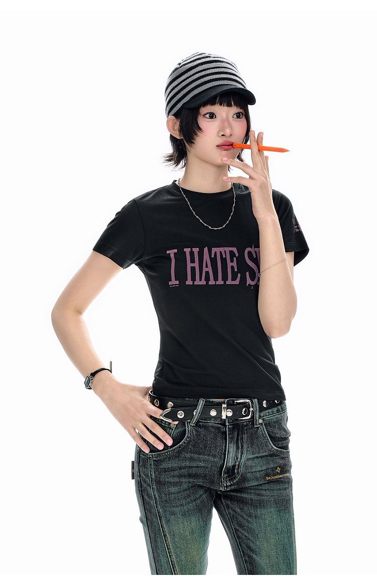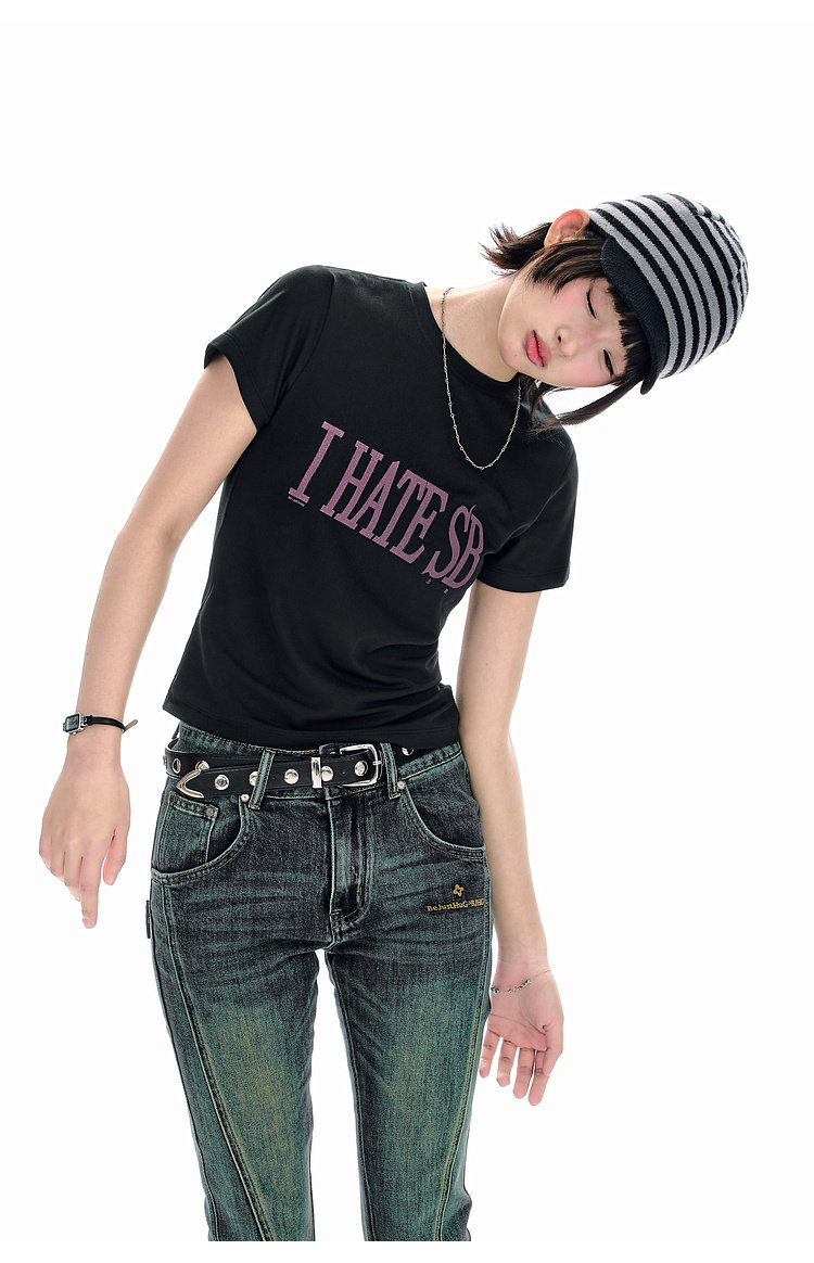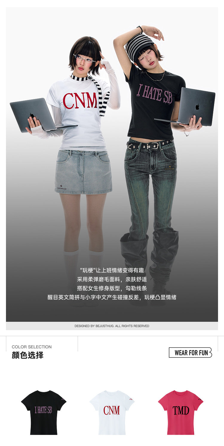 BJHG不计后果 美式短袖t恤女款夏季新款潮牌趣味字母印花修身上衣