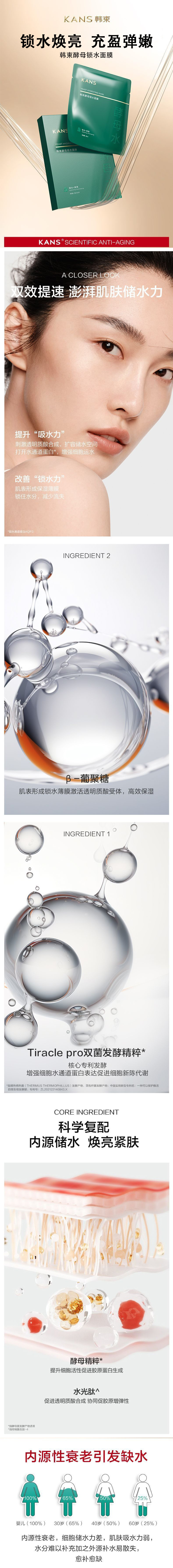 (10元3片)韩束酵母锁水面膜30ml 锁水焕亮 充盈弹嫩