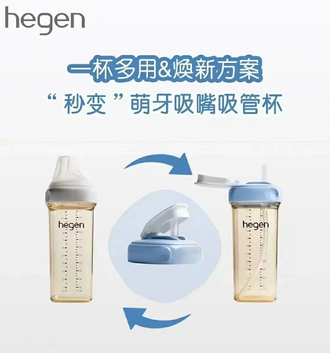 二代新 | 新加坡 Hegen 吸管杯盖 萌牙吸嘴+硅胶管配件组合 | 裁剪可适用于150ml/240ml/330ml瓶身