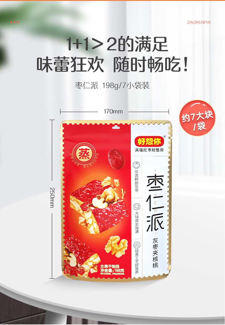 【拍1发5】好想你_枣仁派198g 树上粮仓枣夹薄皮核桃 /达人专享