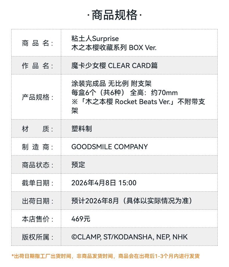 【GSC预售定金】粘土人Surprise 木之本樱收藏系列 BOX Ver. 魔卡少女樱 CLEAR CARD篇 附官方限定特典