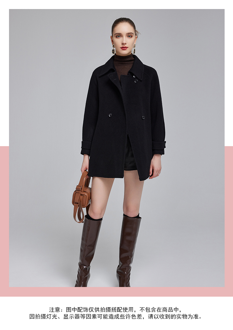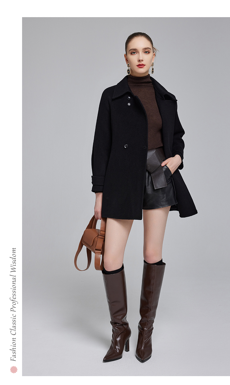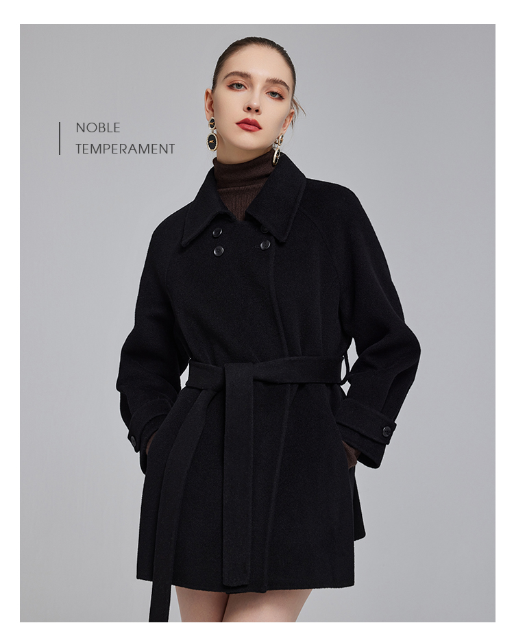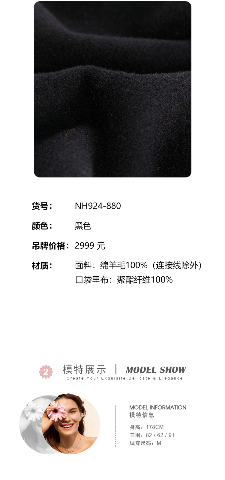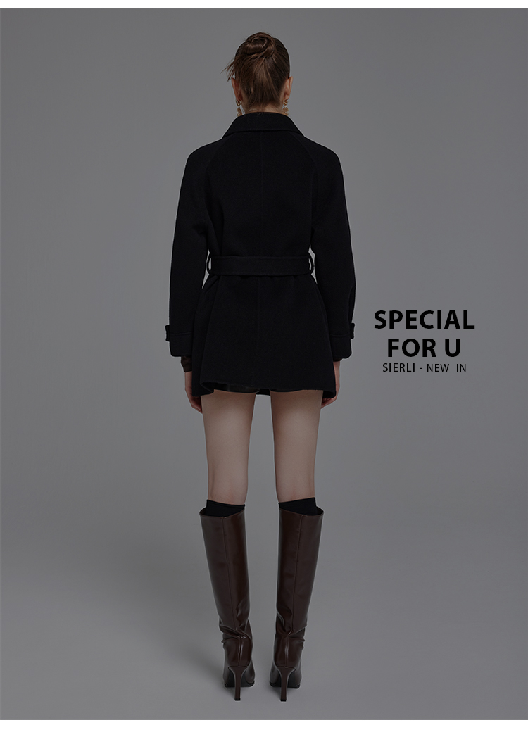 NH924斯尔丽23冬季新款装饰扣时尚翻领系腰带小个子双面呢大衣