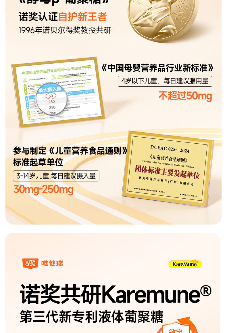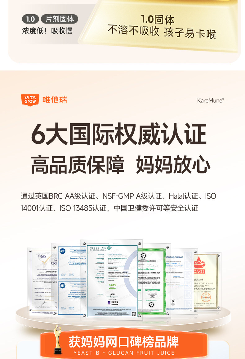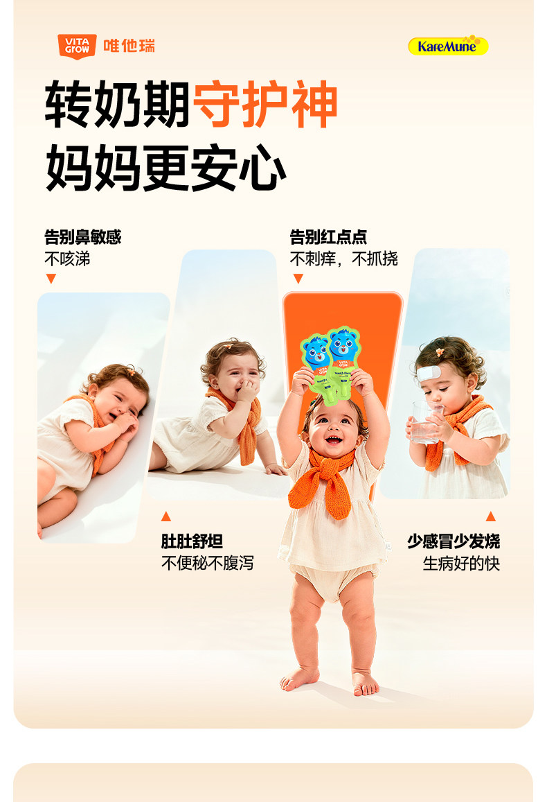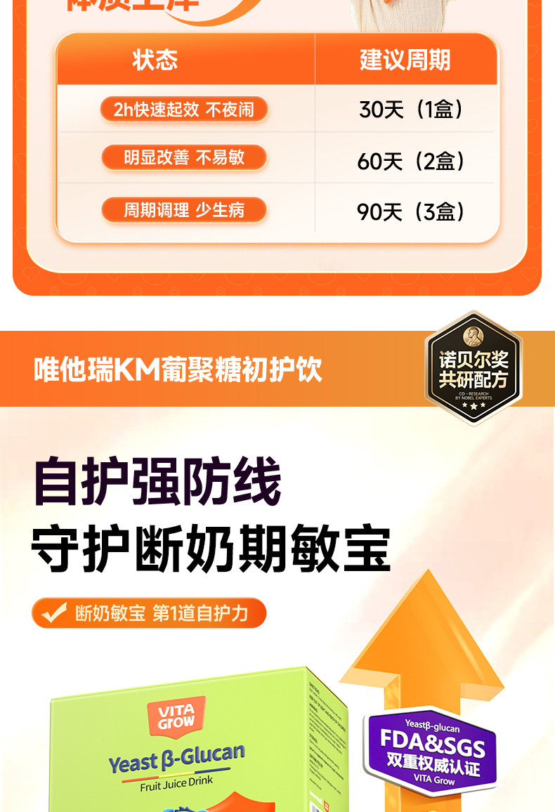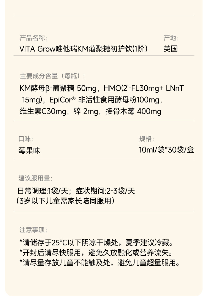 【敏宝随心玩】Vita Grow唯他瑞 酵母 舒敏饮 30条/盒 葡聚糖免疫力儿童婴幼儿液体