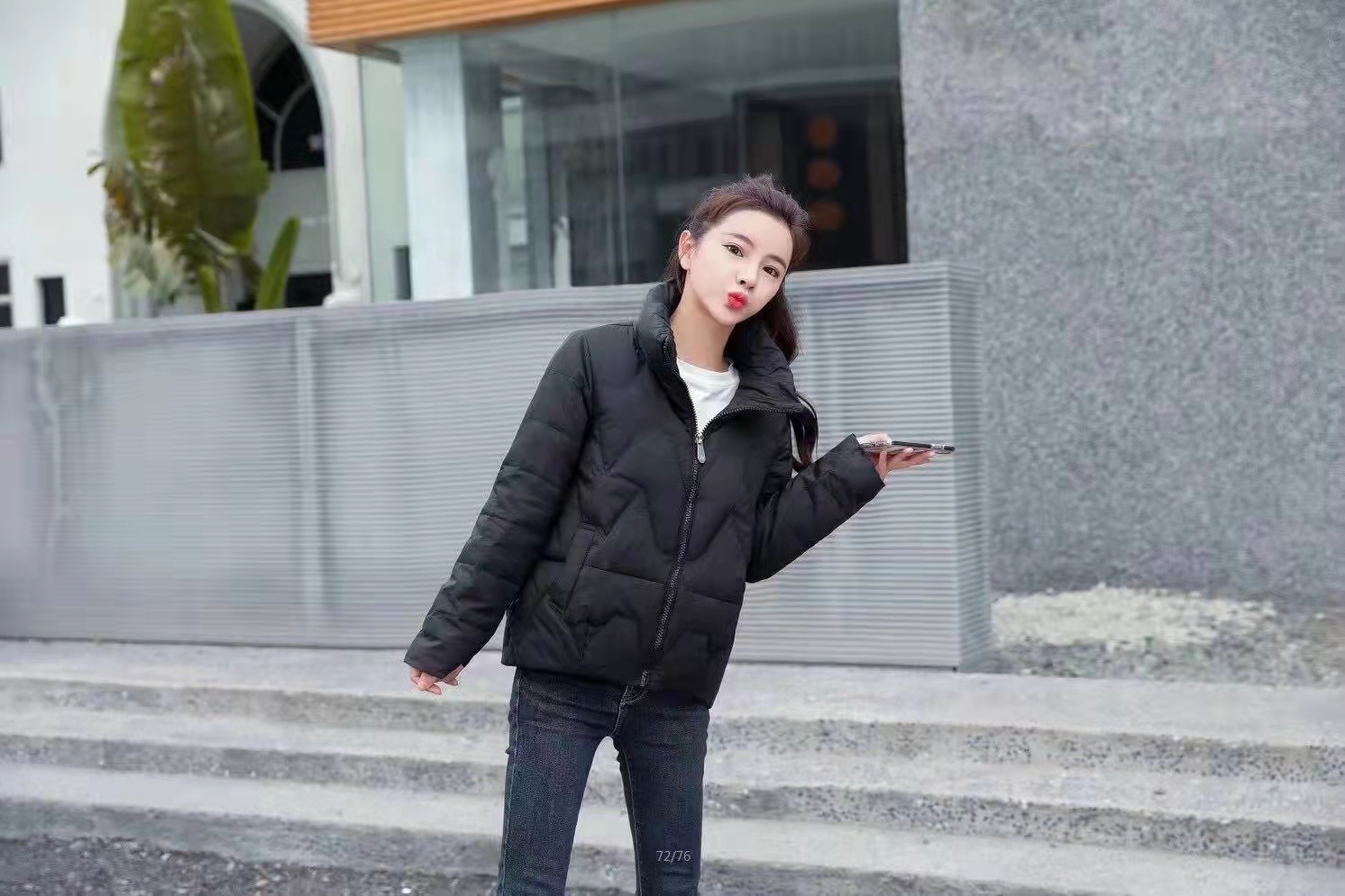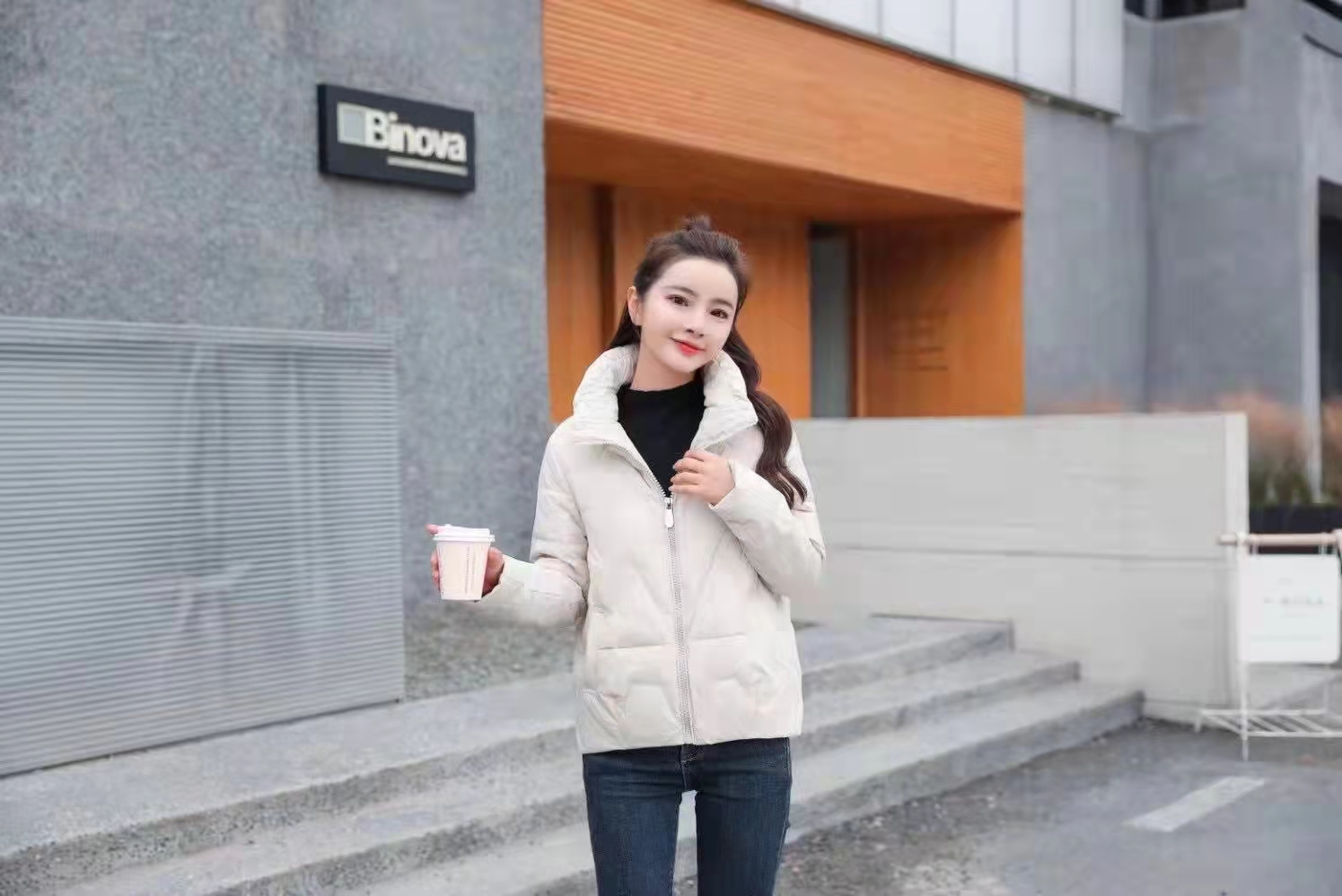 时尚雪羽绒服22009。有米白、黑色和紫三个颜色从80-140可以穿着