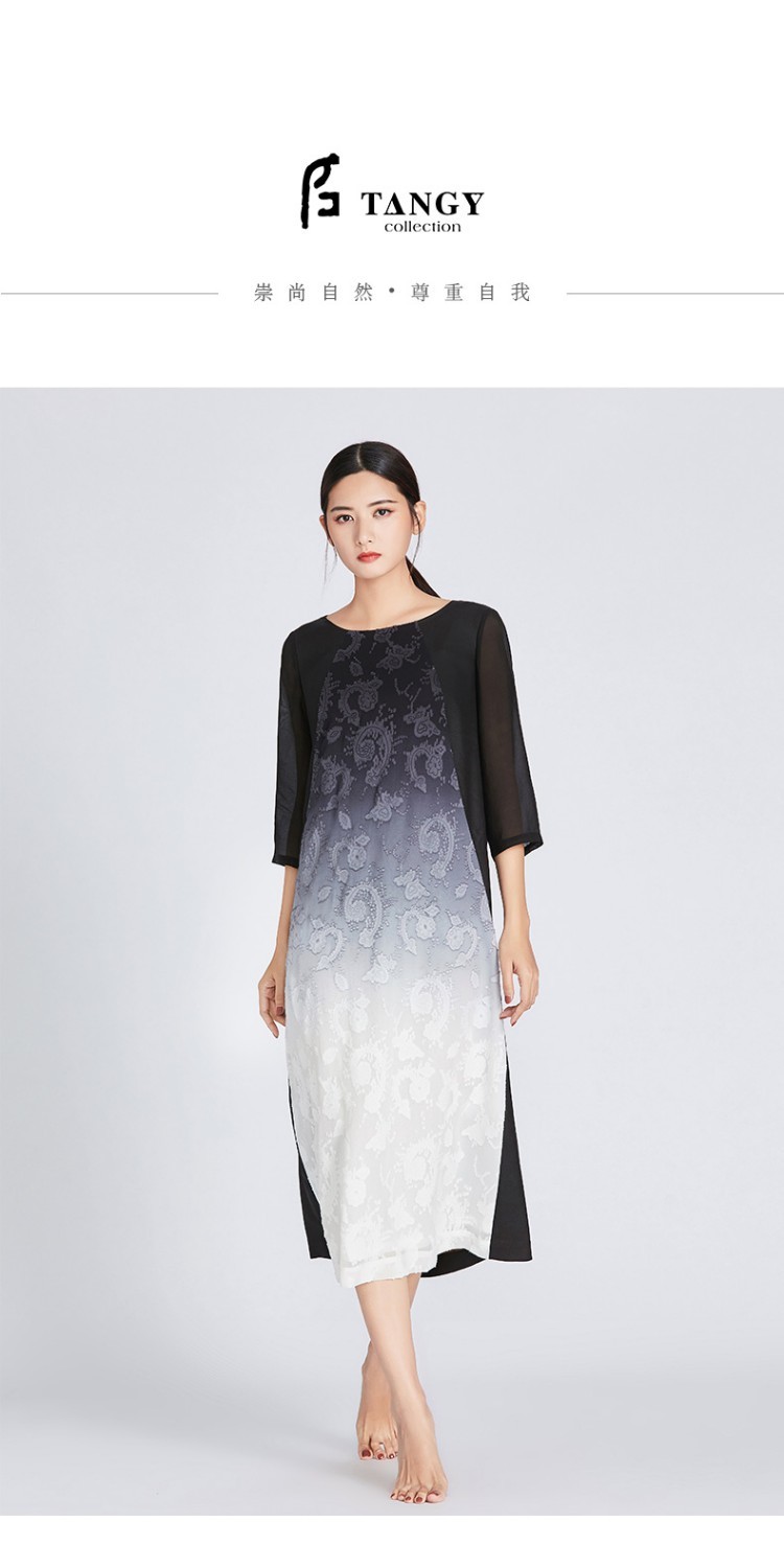 TANGY Collection/天意精品夏季新款莨绸拼接吊染宽松连衣裙