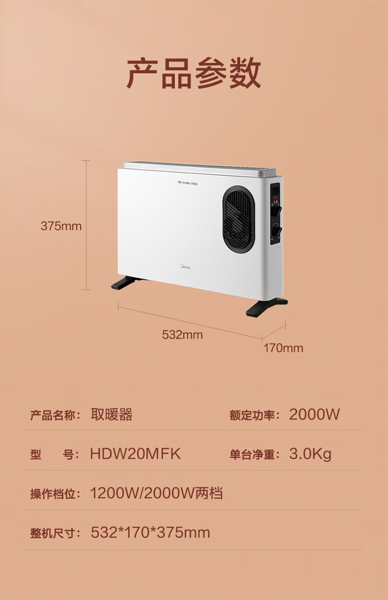 美的 HDW20MFK 取暖器双向发热节能速热电暖气器客厅 (创)
