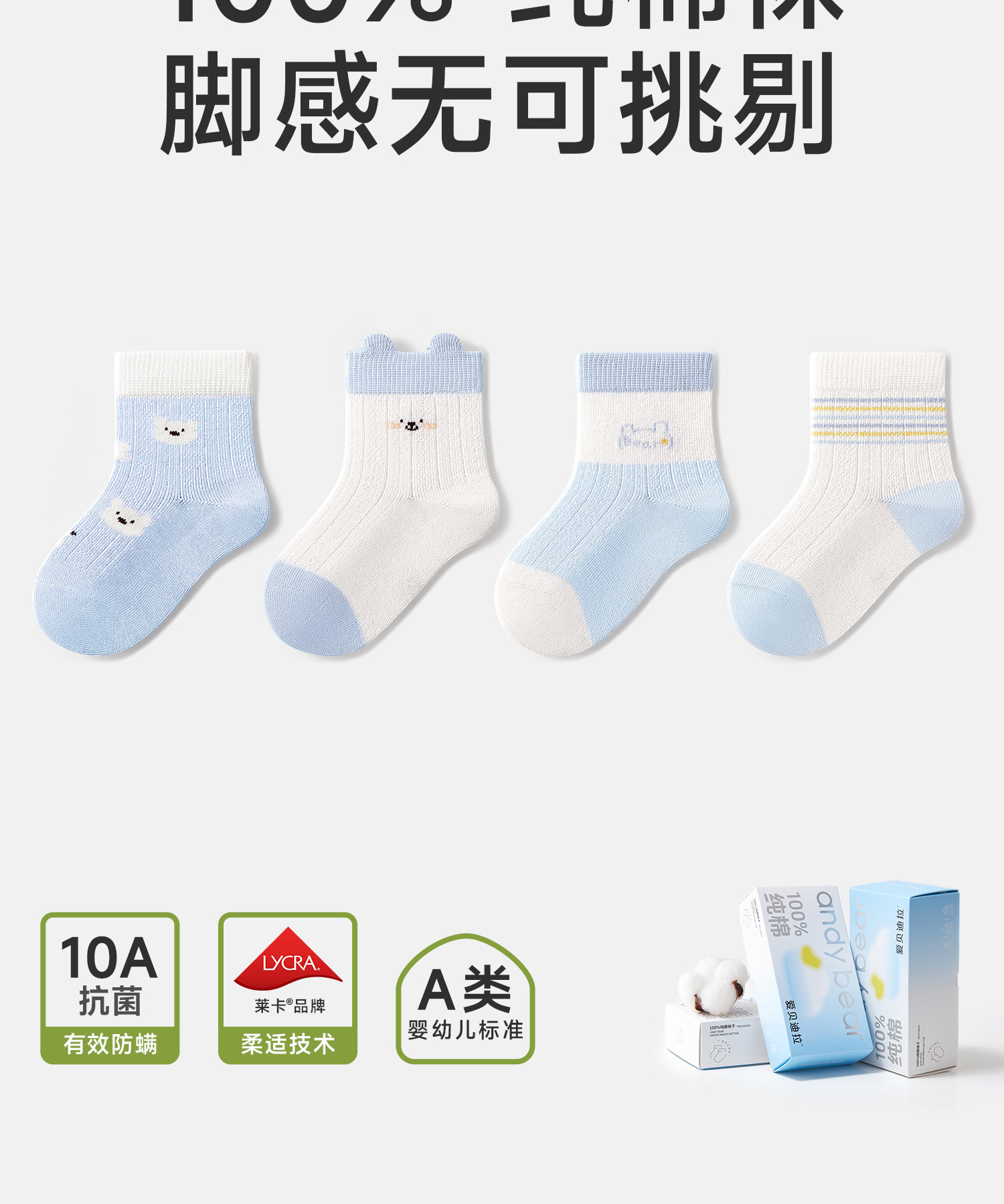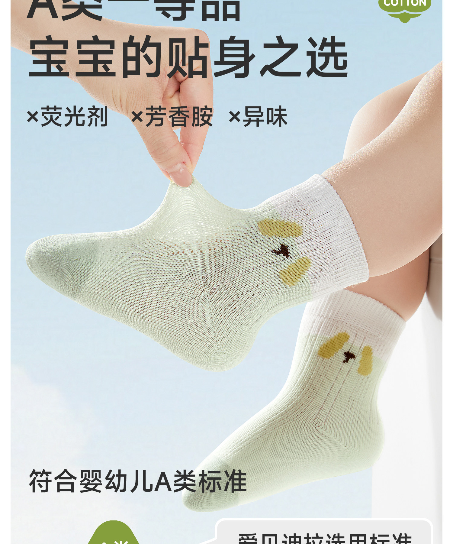 婴儿袜子春夏季薄款纯棉新生幼儿0到3小月龄中筒防脱落不勒腿a类
