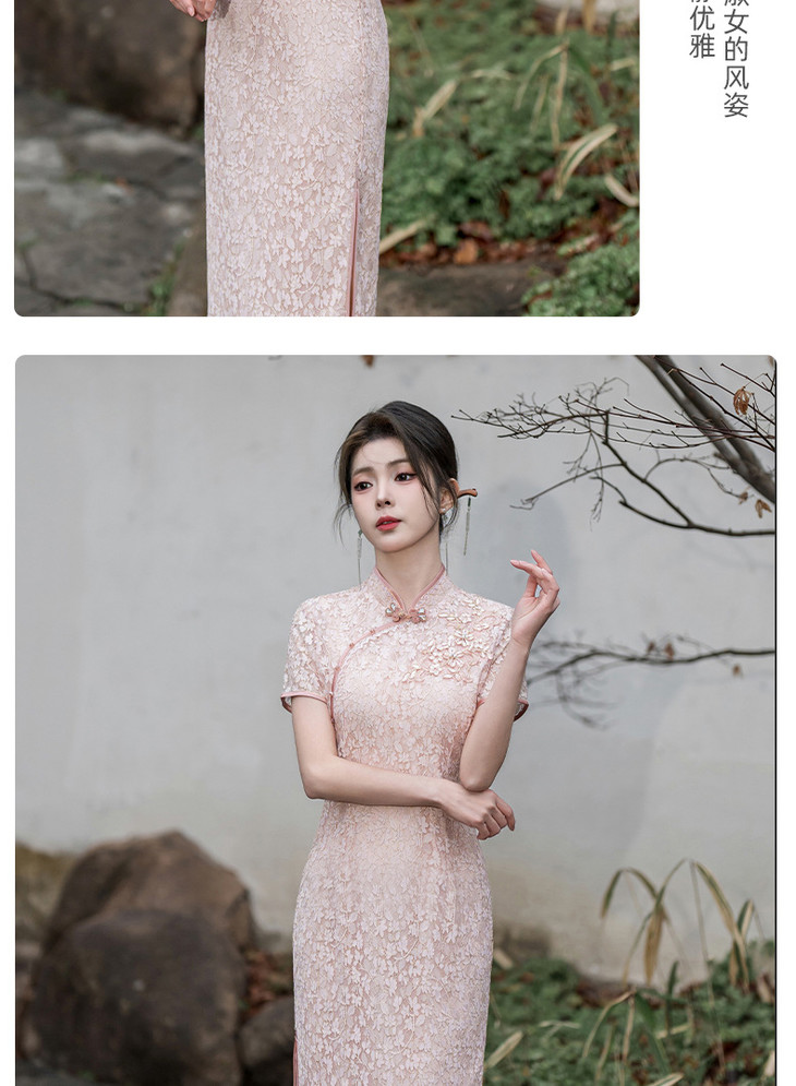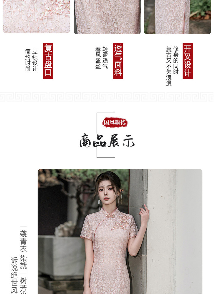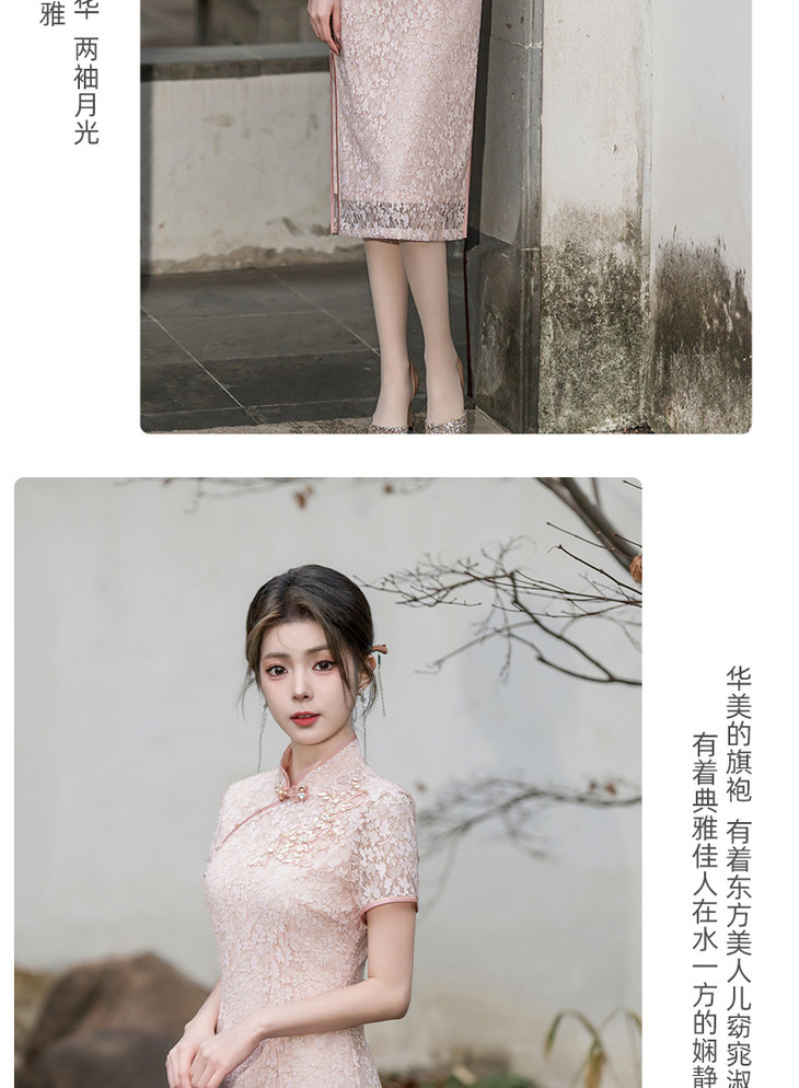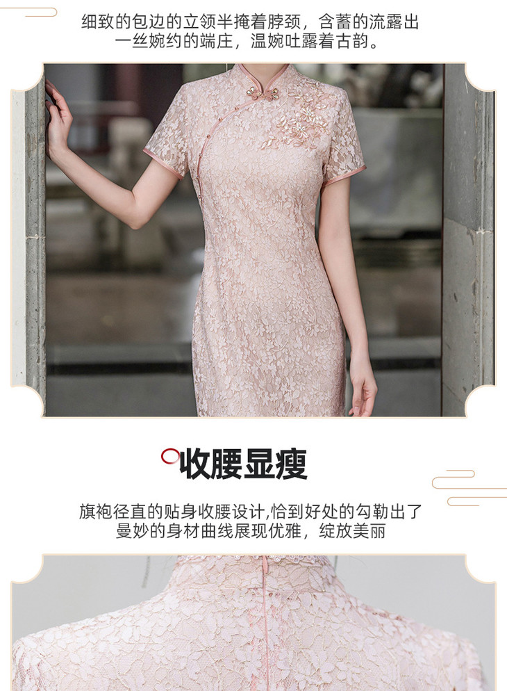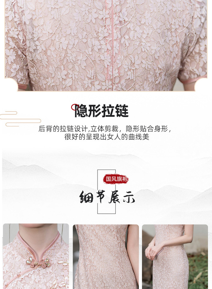 春夏新款高端蕾丝旗袍年轻款粉色淑女气质双层JLM3228