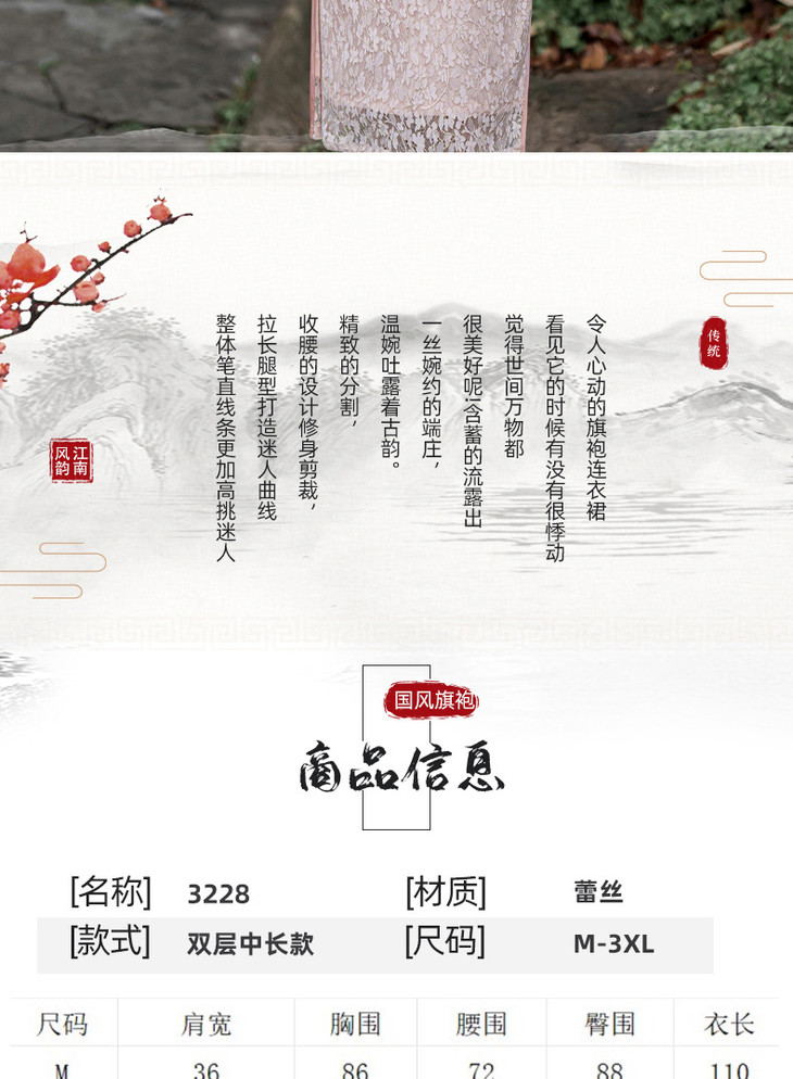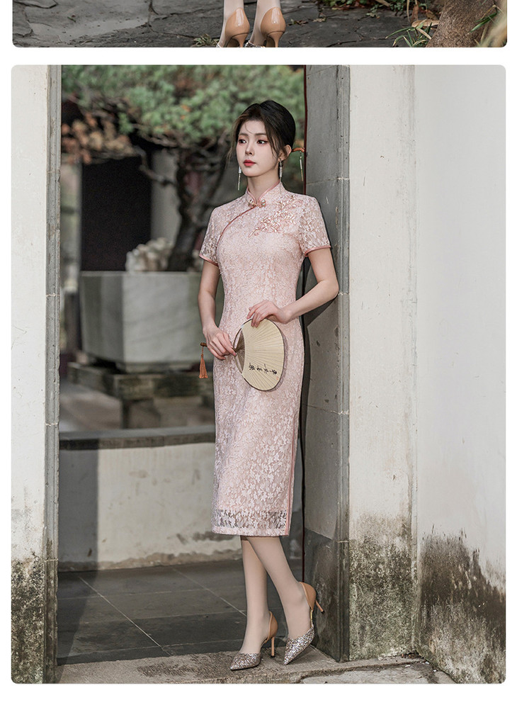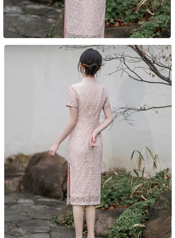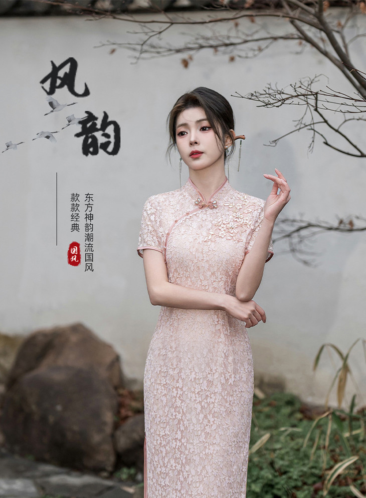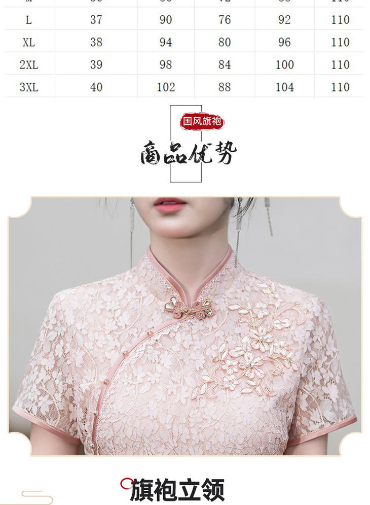 春夏新款高端蕾丝旗袍年轻款粉色淑女气质双层JLM3228