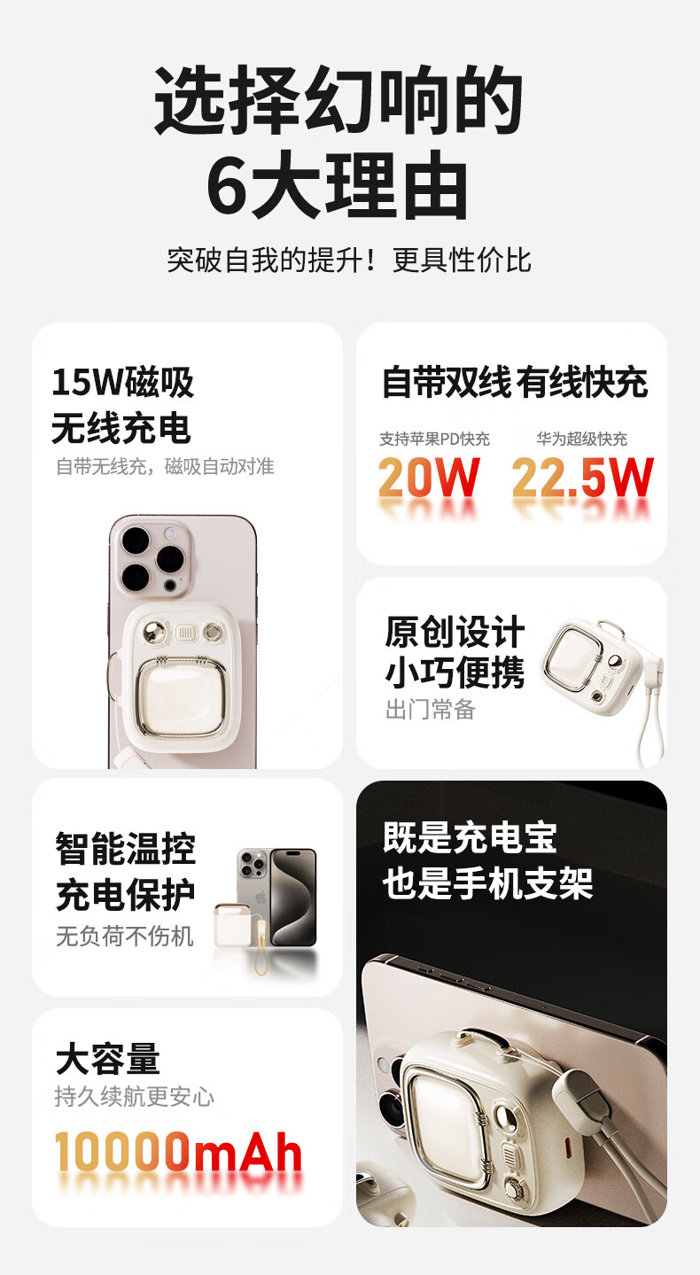 【幻响小电视快充移动电源 S18】轻薄出行 磁吸充电 10000mAh