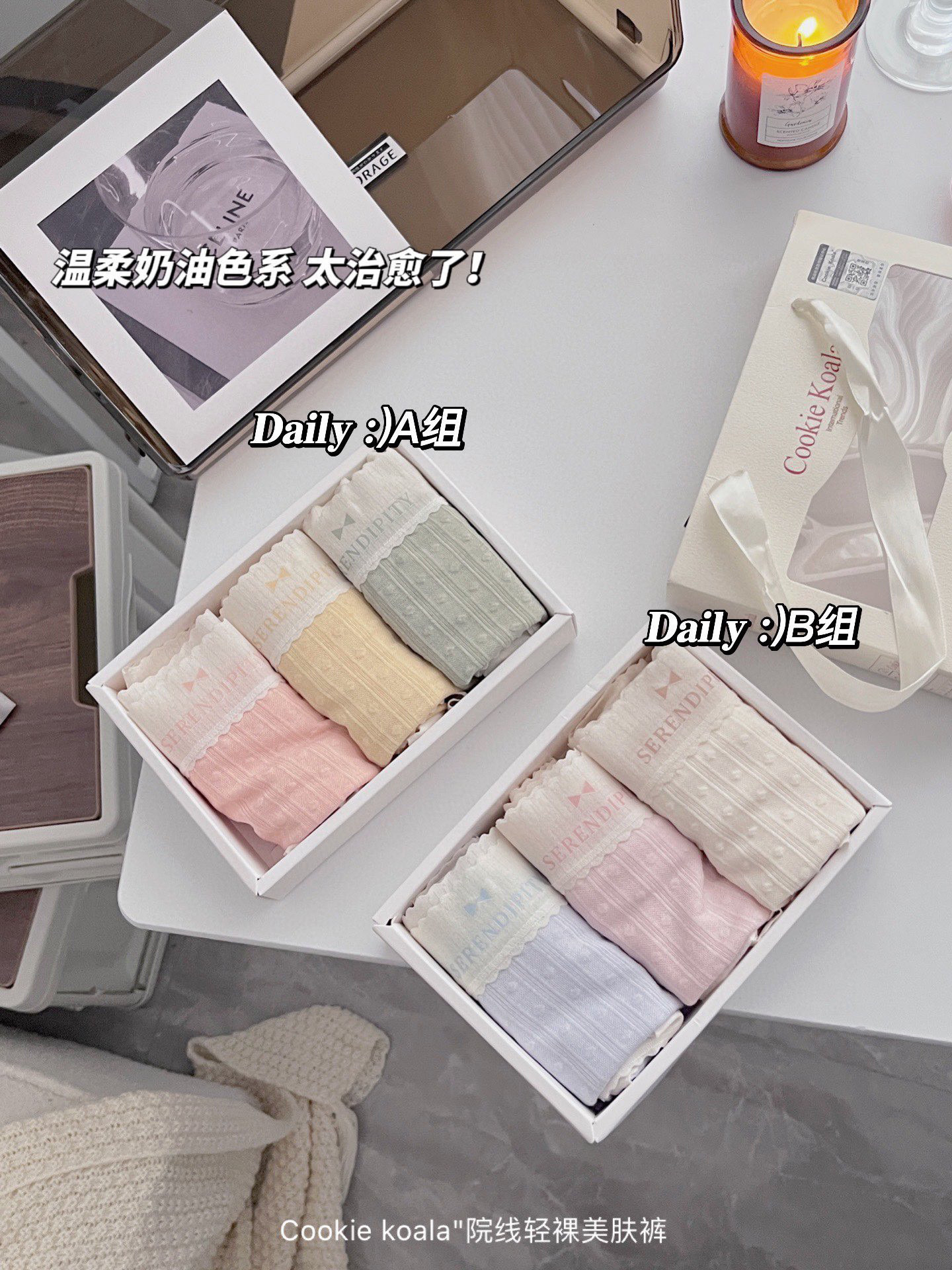 CookieKoala院线轻裸美肤少女内裤轻肤柔软女士三角裤三条礼盒装