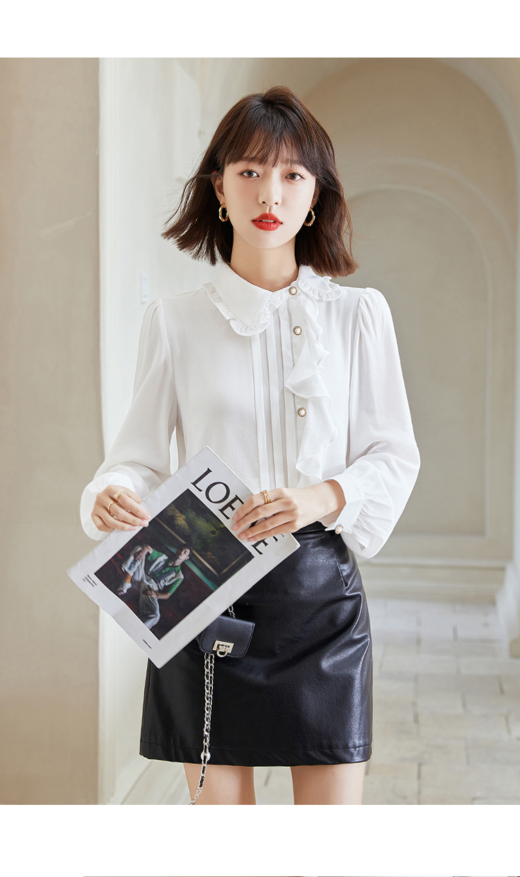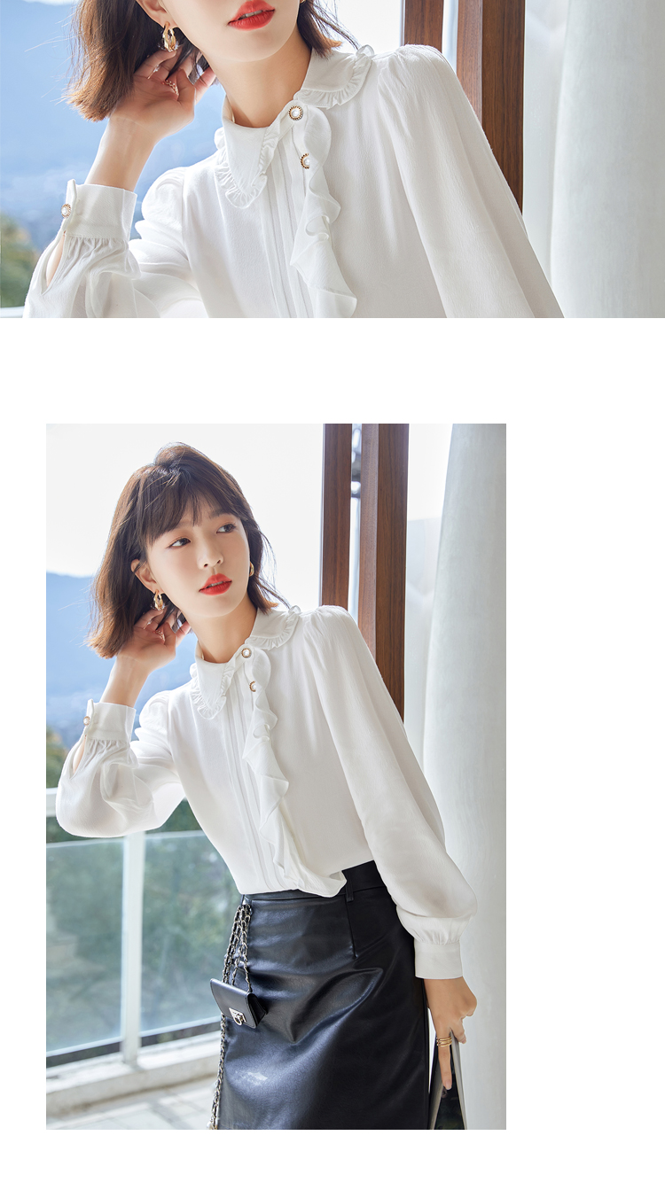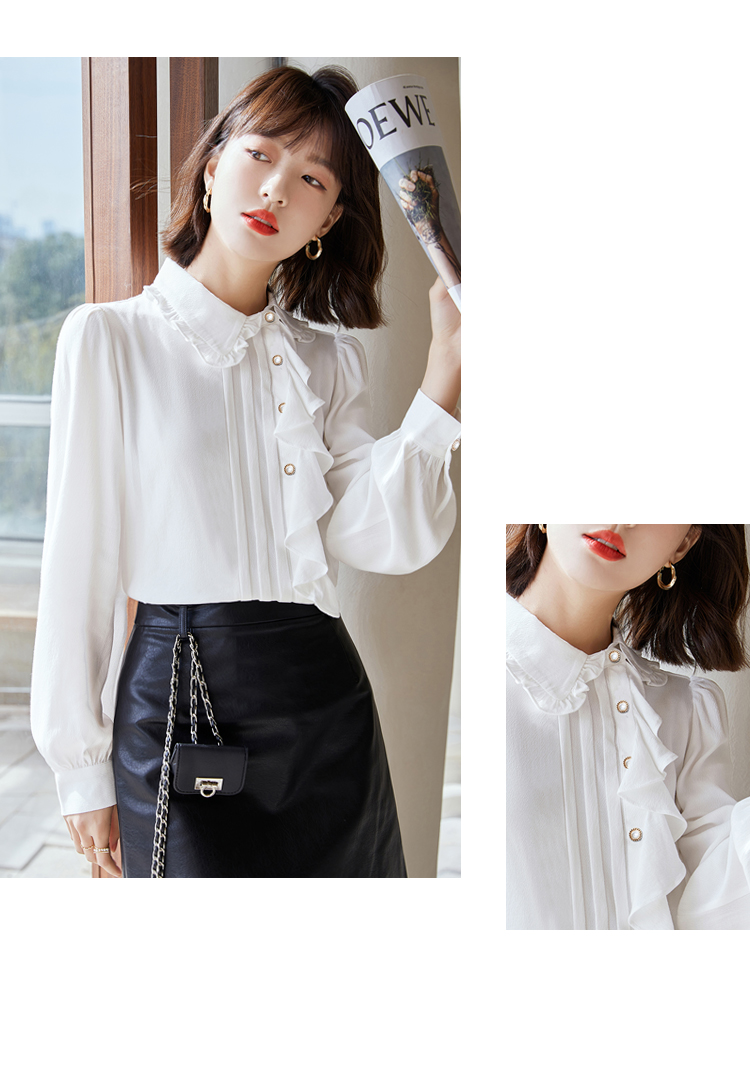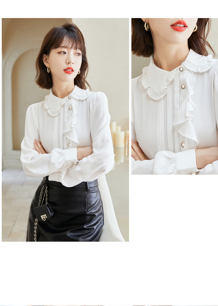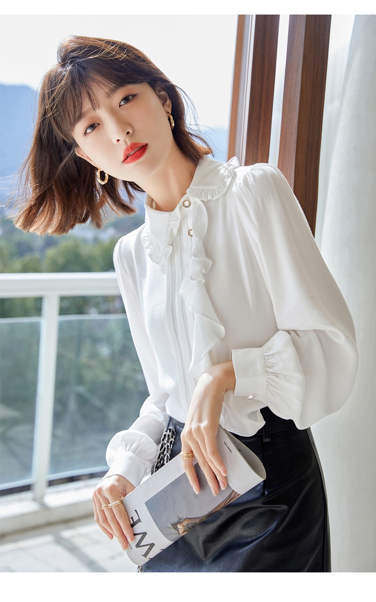 早春新款2022年白色蕾丝木耳边衬衫女高级感别致漂亮小衫法式立领 NSM1800