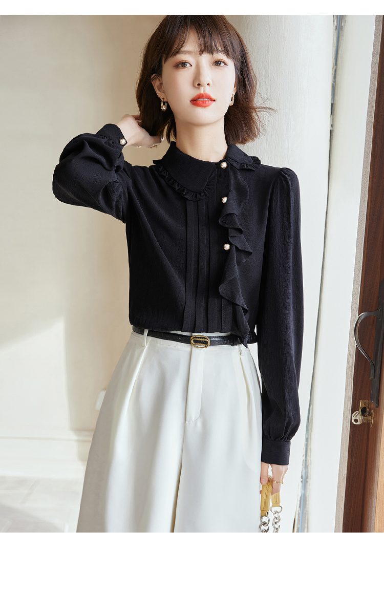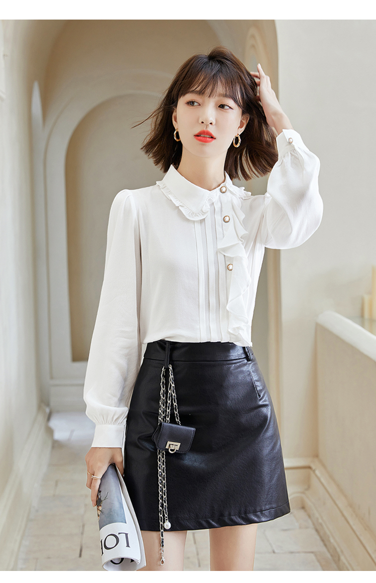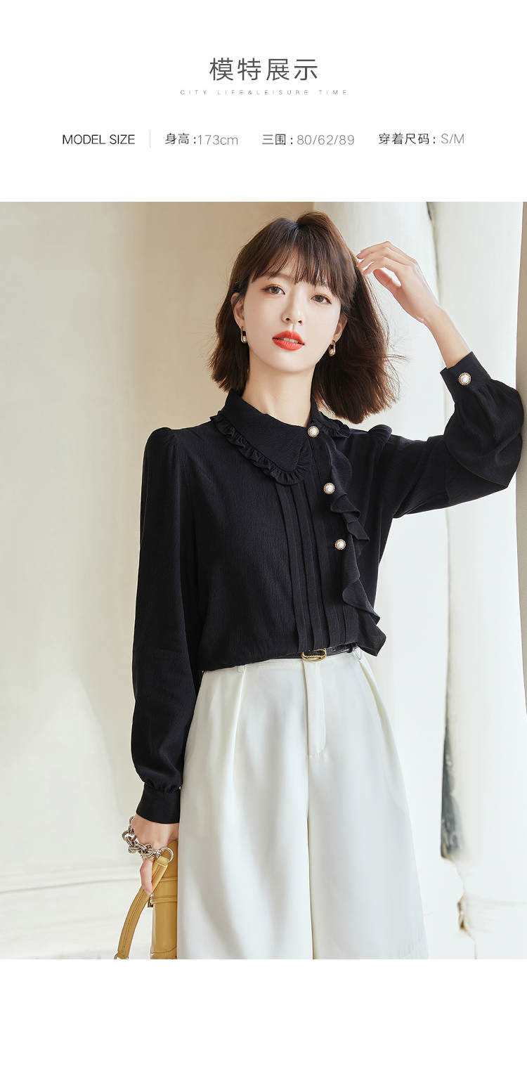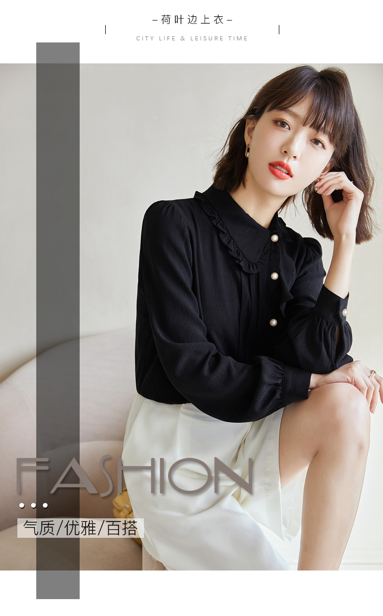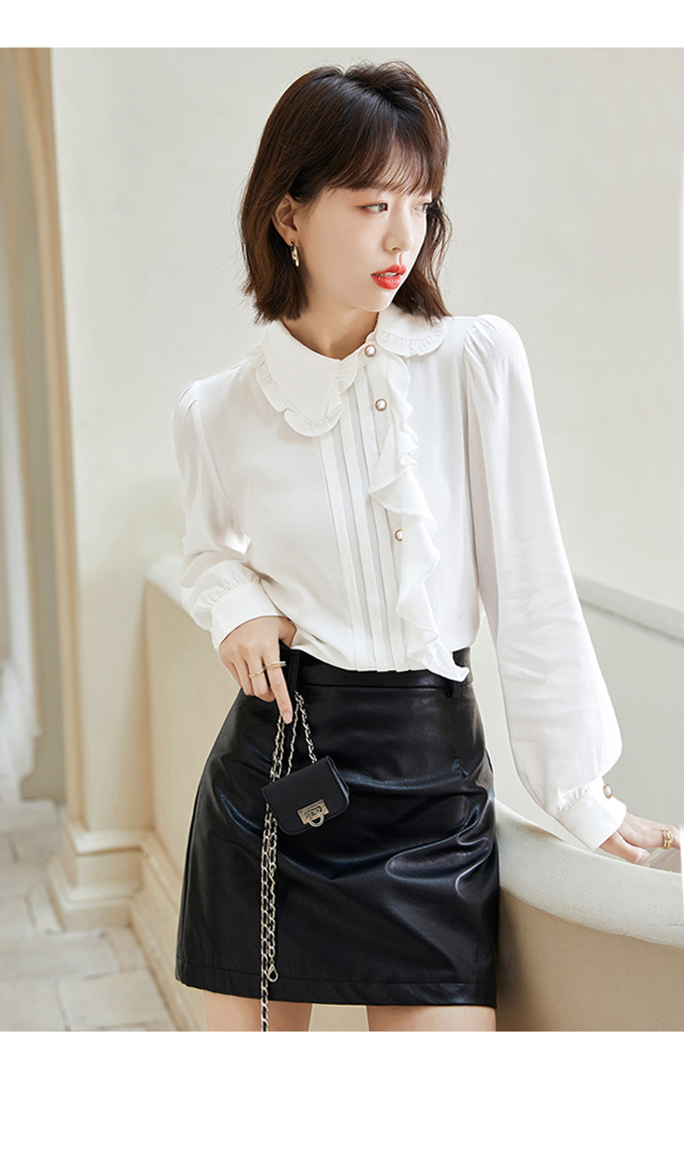 早春新款2022年白色蕾丝木耳边衬衫女高级感别致漂亮小衫法式立领 NSM1800