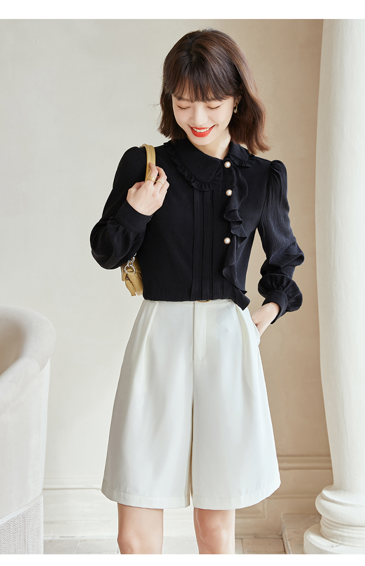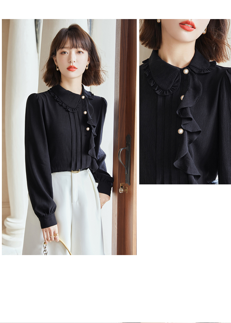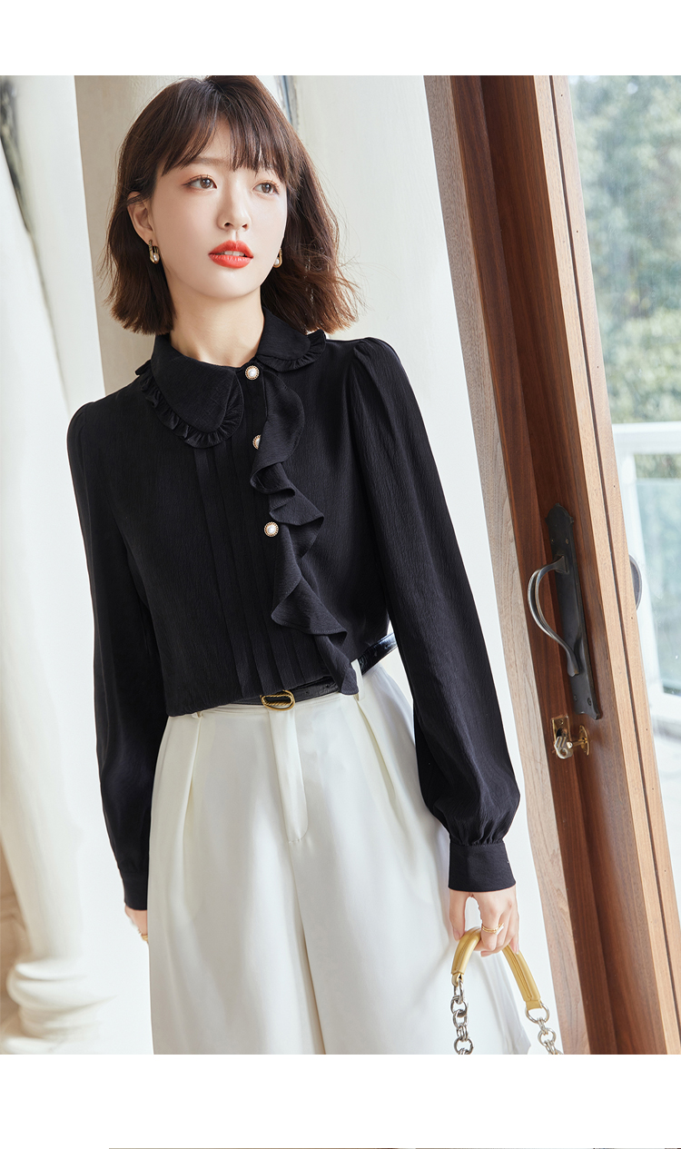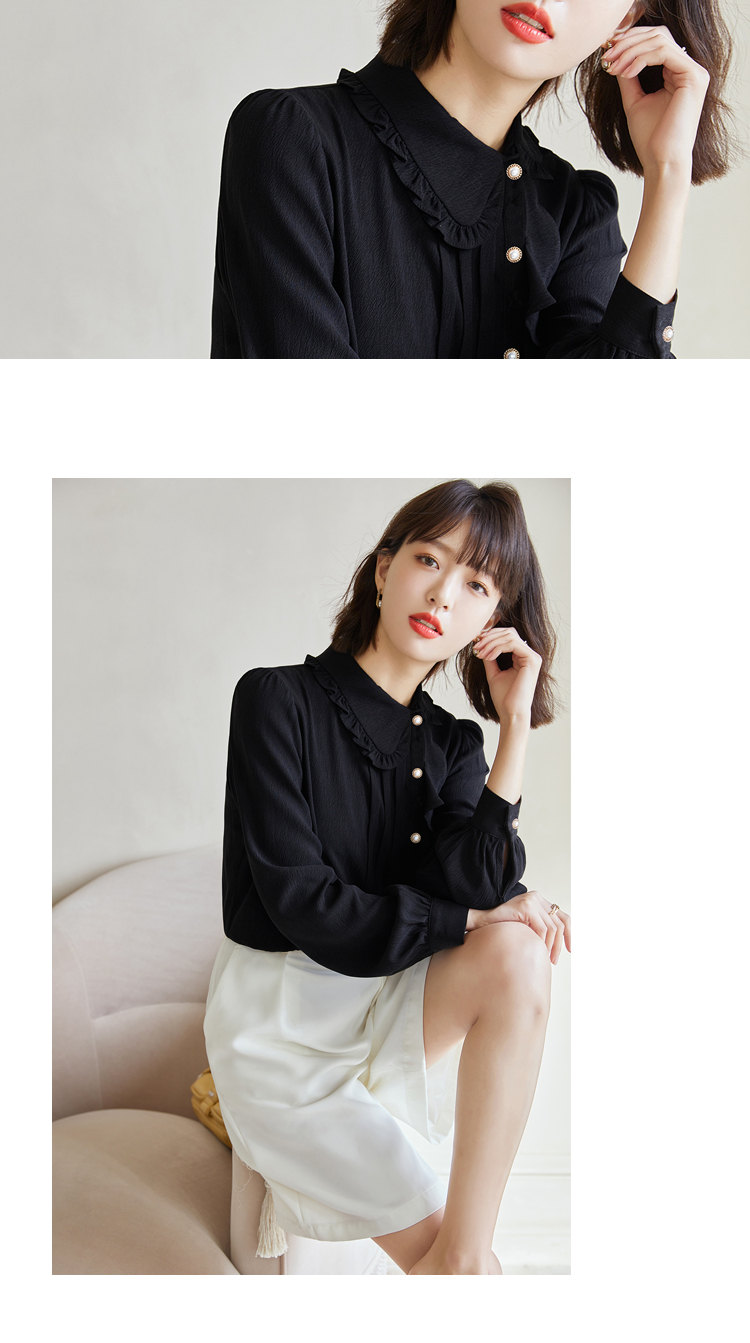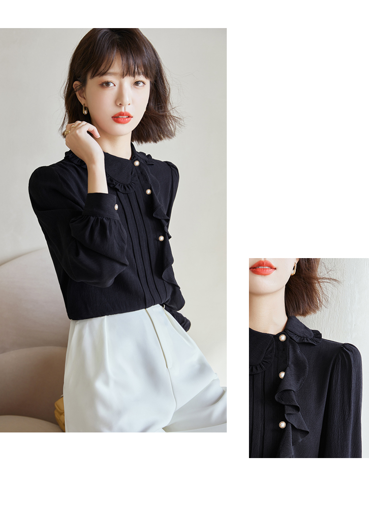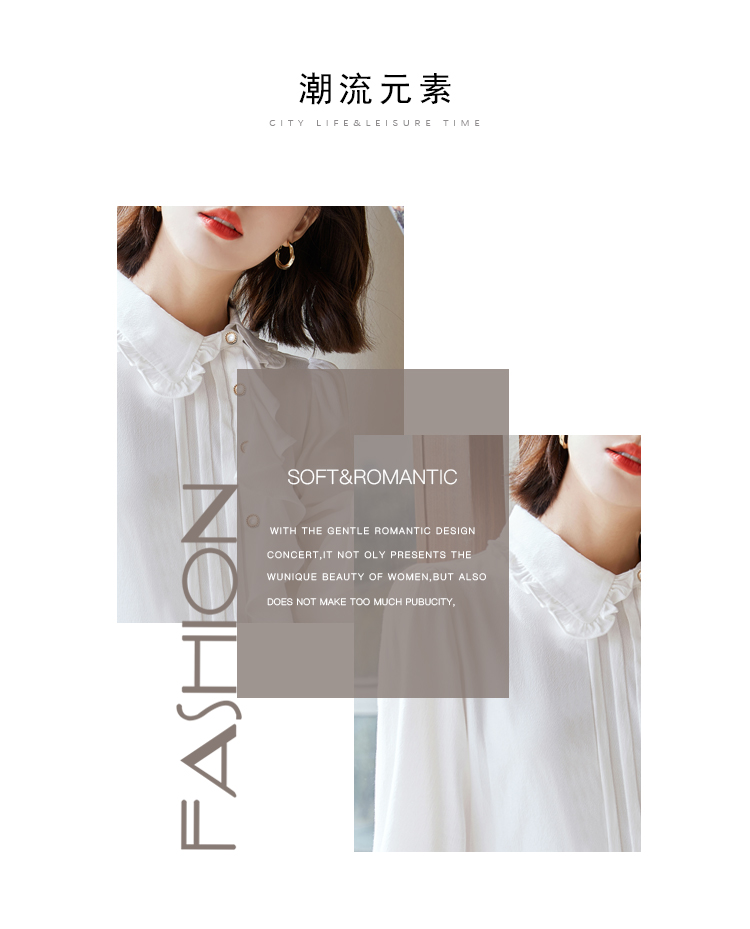早春新款2022年白色蕾丝木耳边衬衫女高级感别致漂亮小衫法式立领 NSM1800