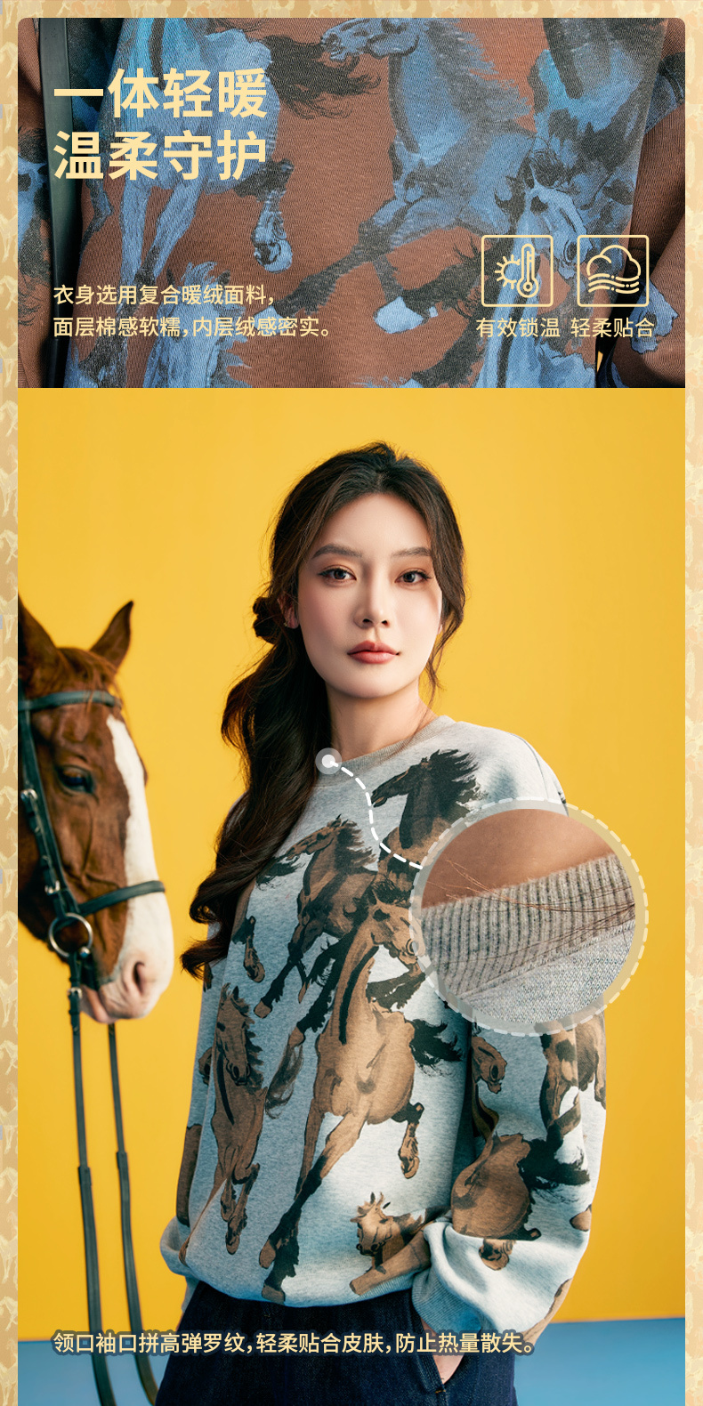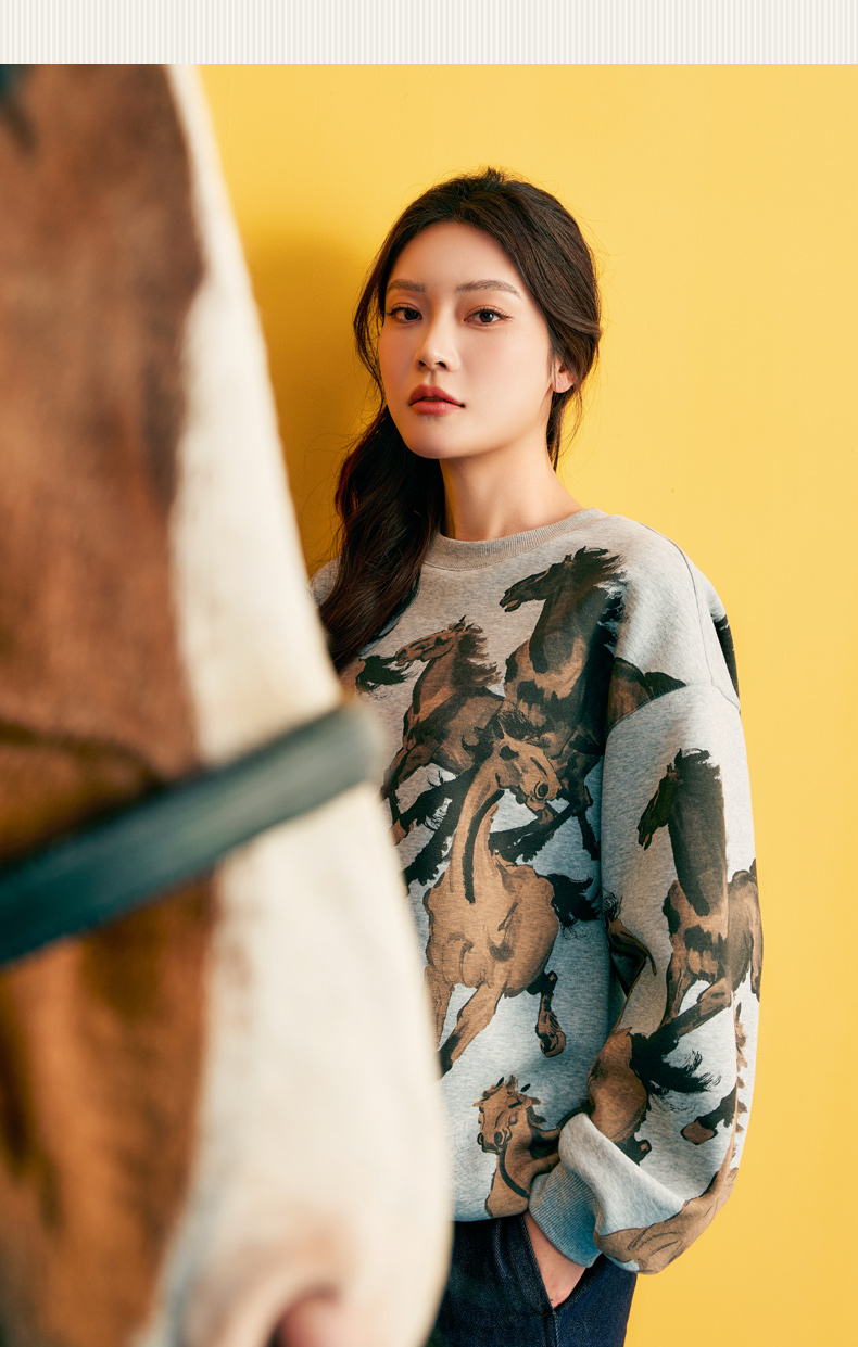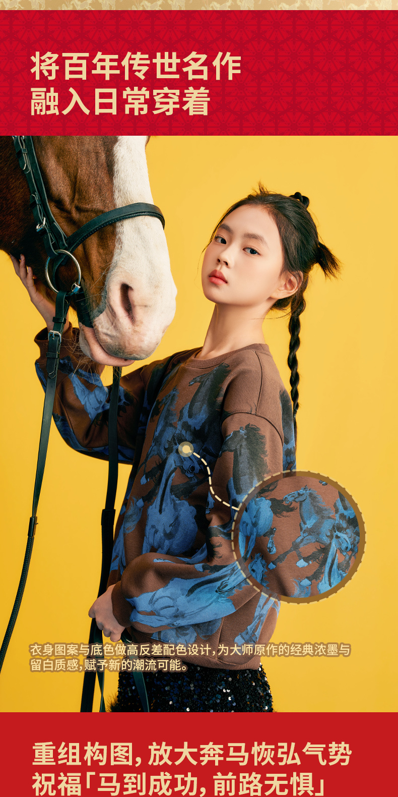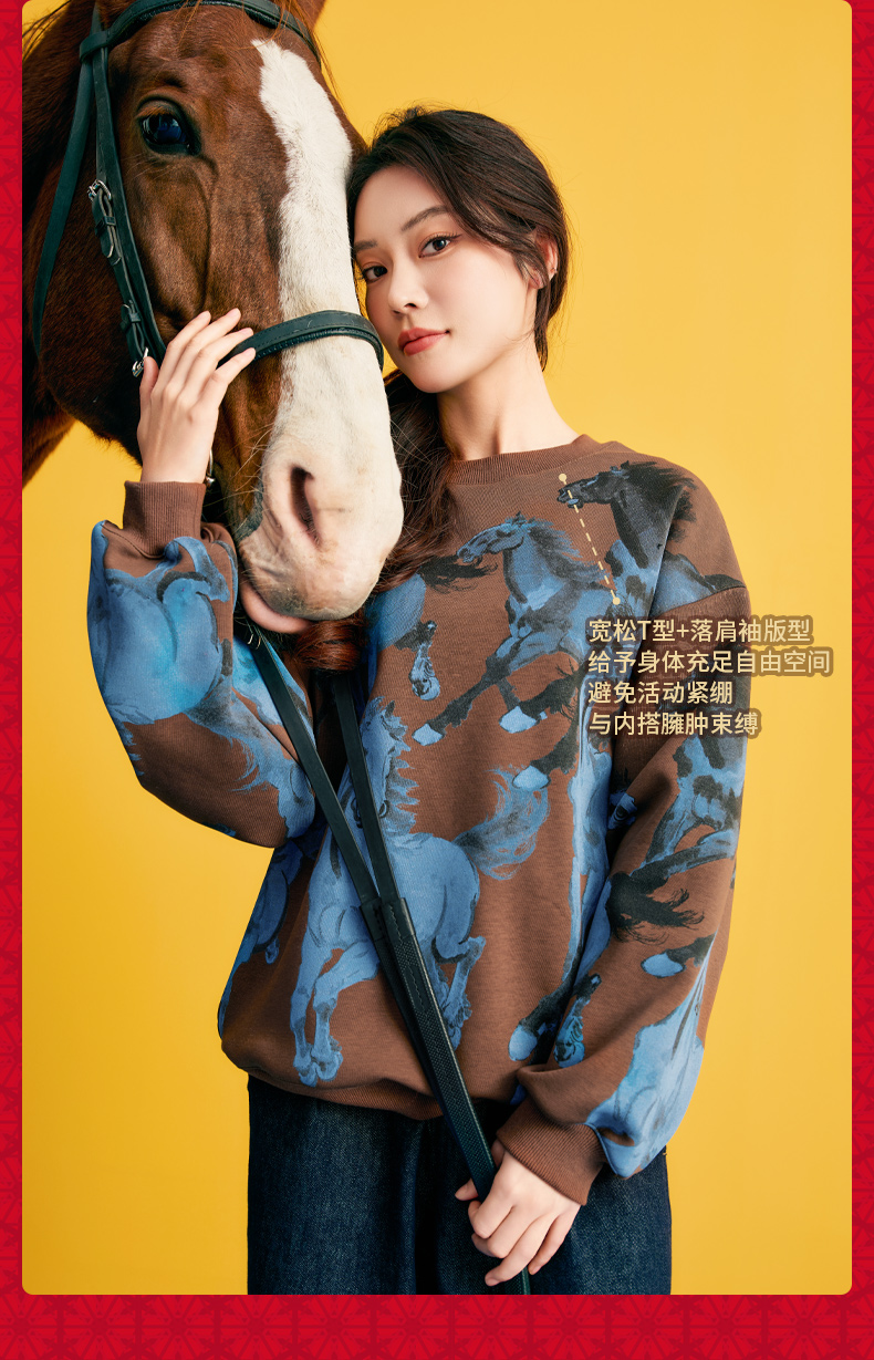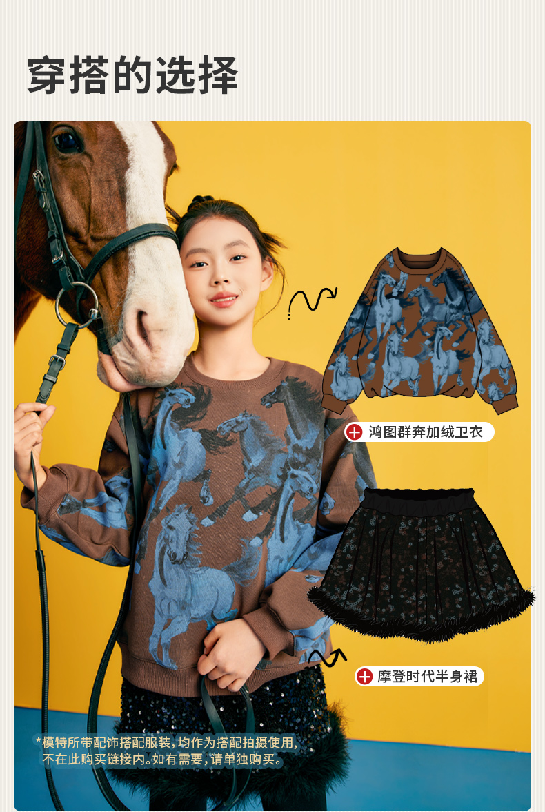 徐悲鸿联名年衣童装儿童加绒卫衣冬款男女童亲子装鸿图群奔加绒卫衣