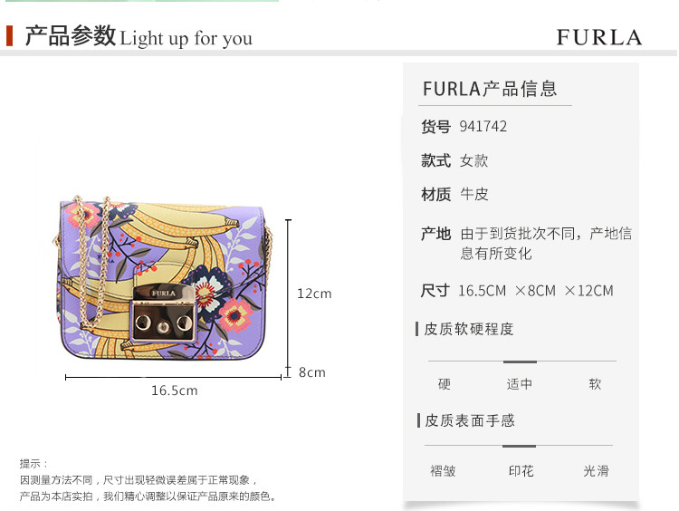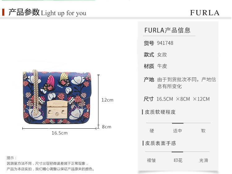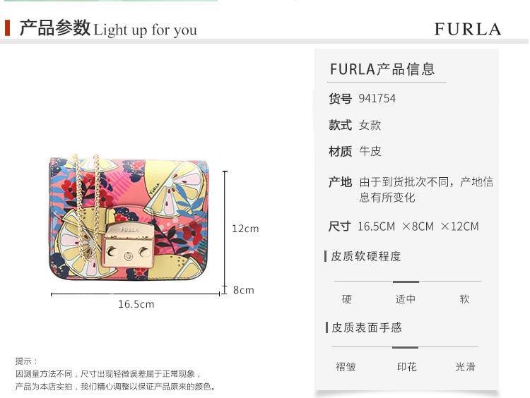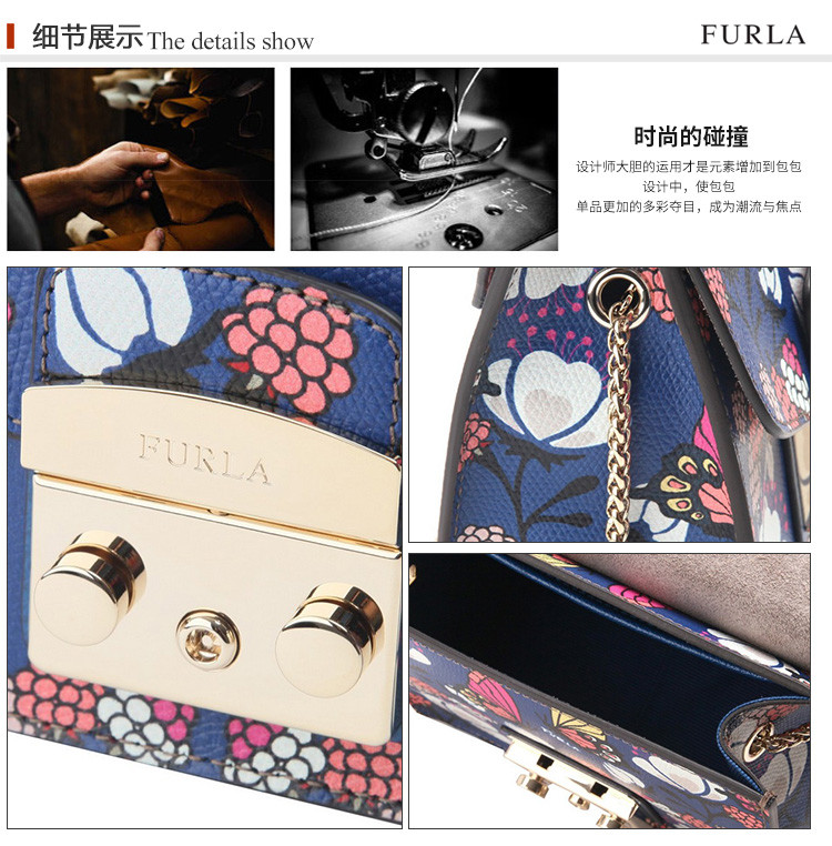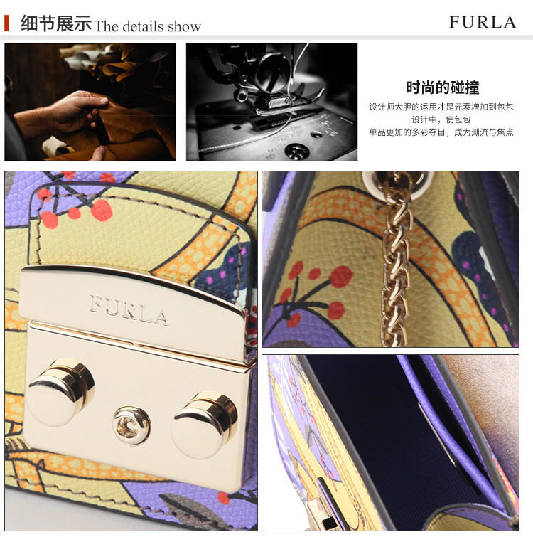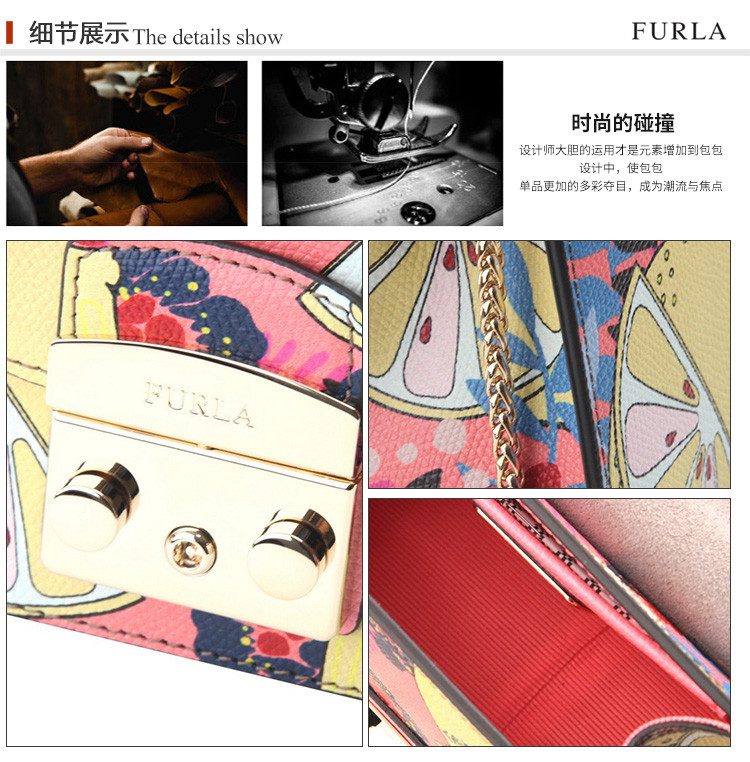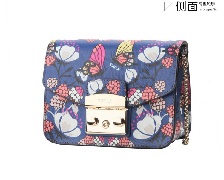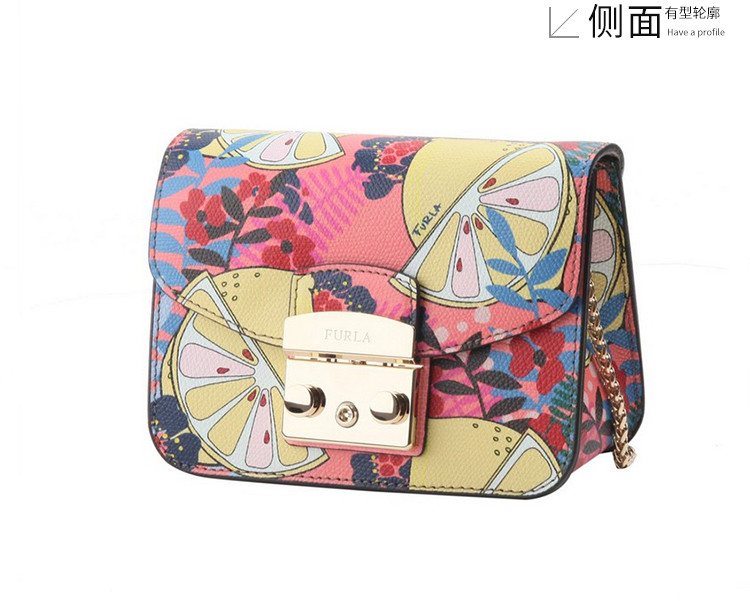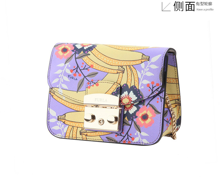 FURLA/芙拉 METROPOLIS系列 女士印花牛皮单肩斜挎包小猪包小方包链条包女包 多色可选941742