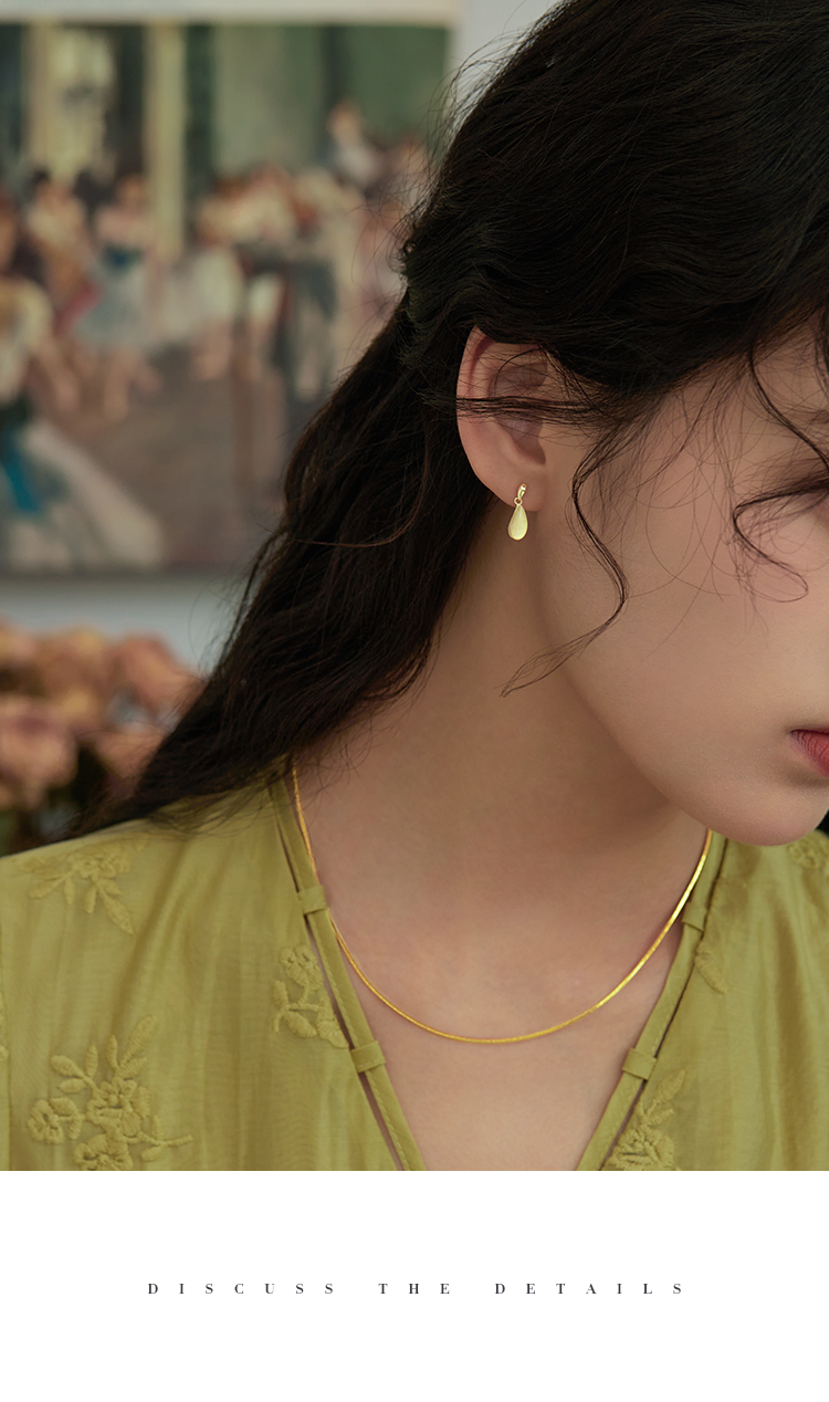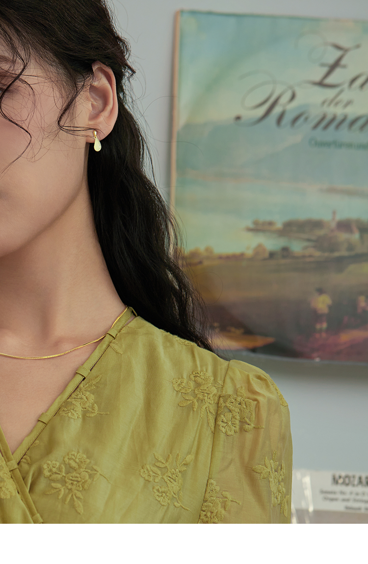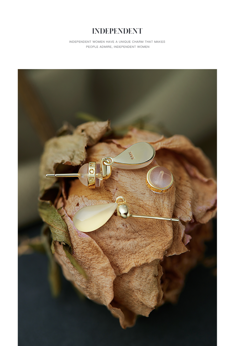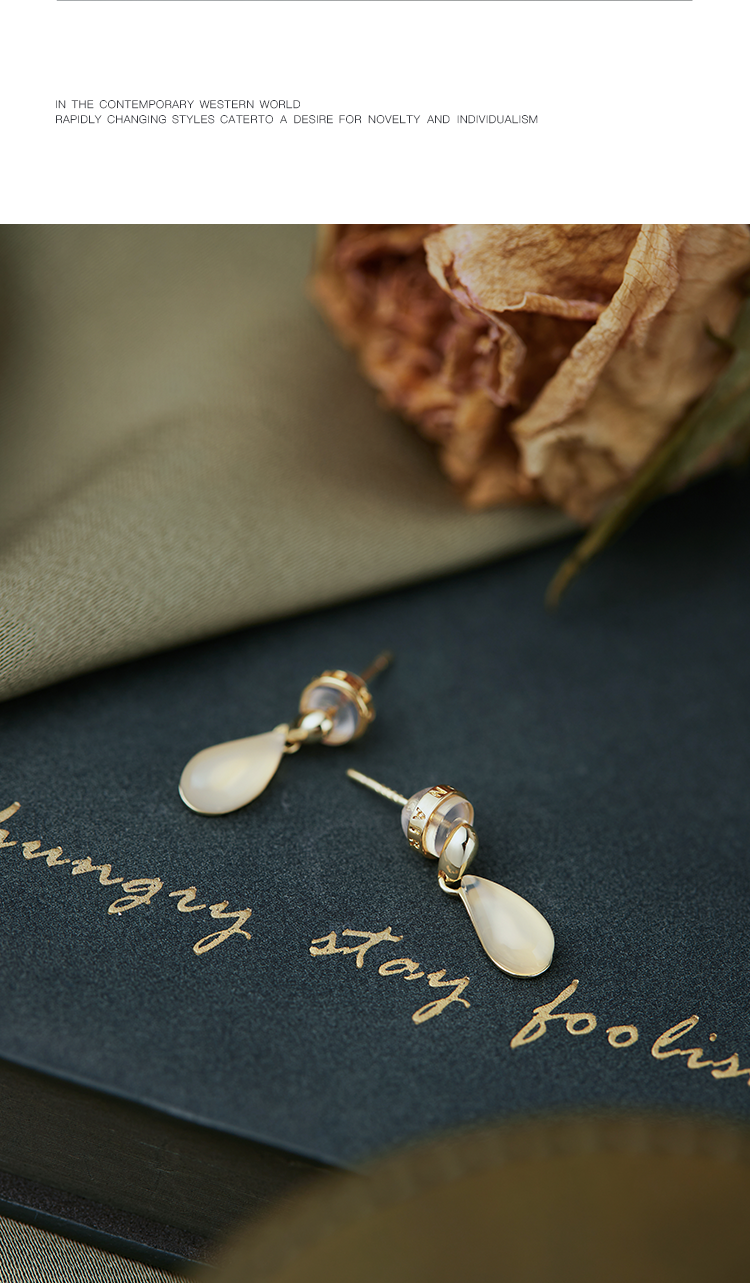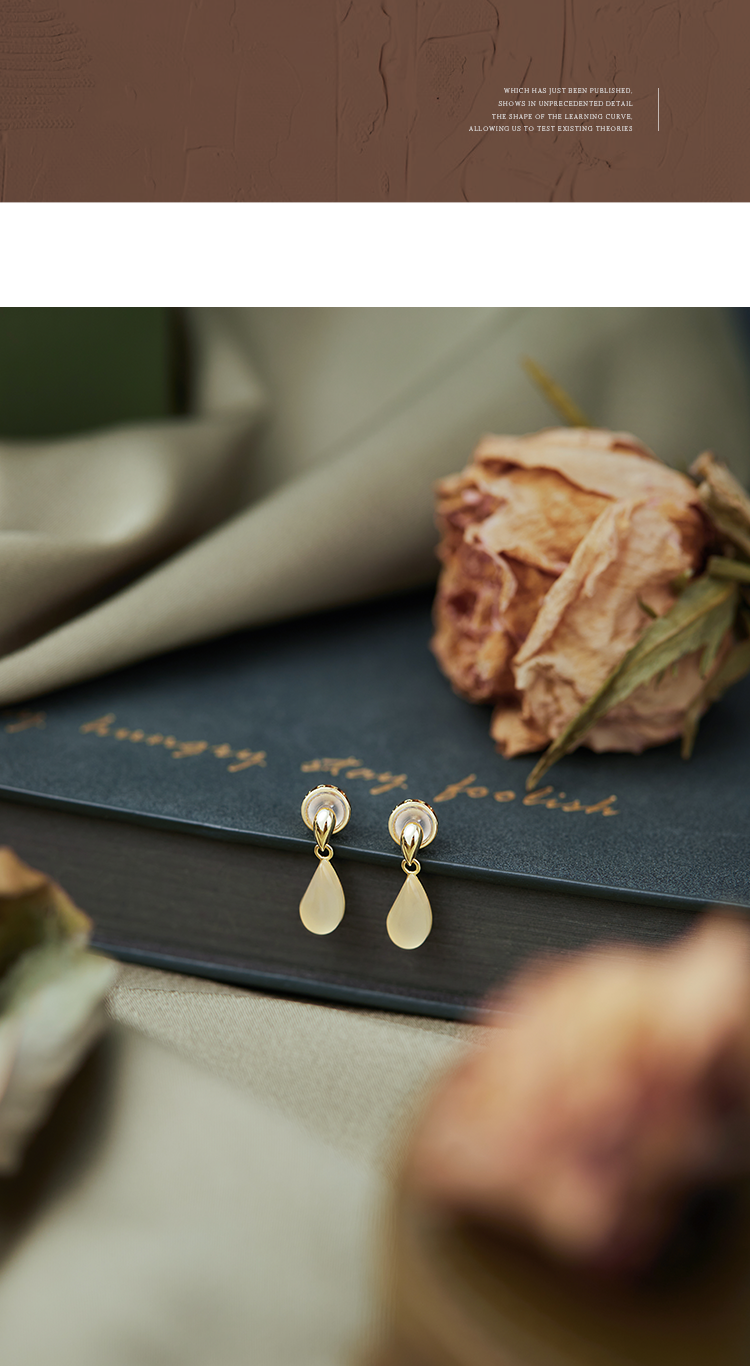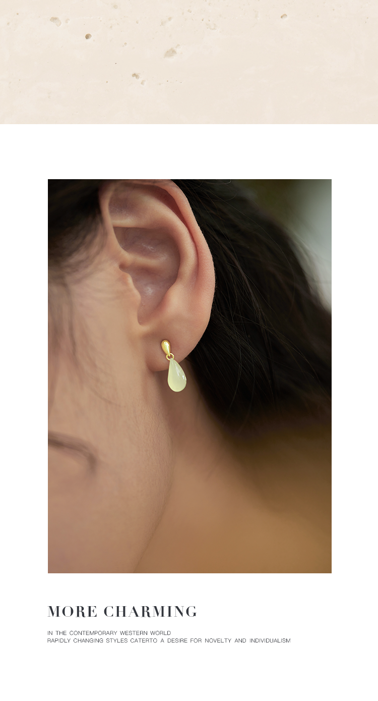 Oflye潮流饰品 法式复古水滴玉髓吊坠S925纯银耳环女高级感小众耳钉简约气质耳饰