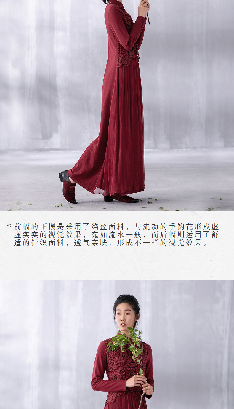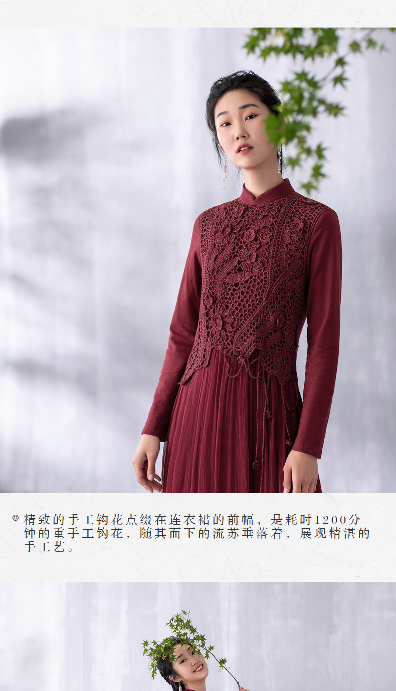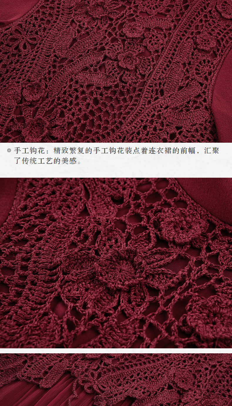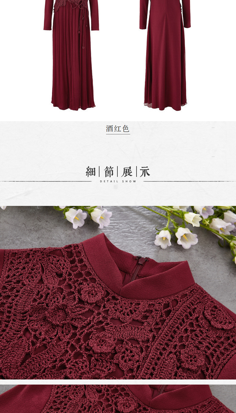 【林栖设计小店】生活在左 手工钩花长袖拼真丝复古显瘦连衣裙子1902462-紫色1961188