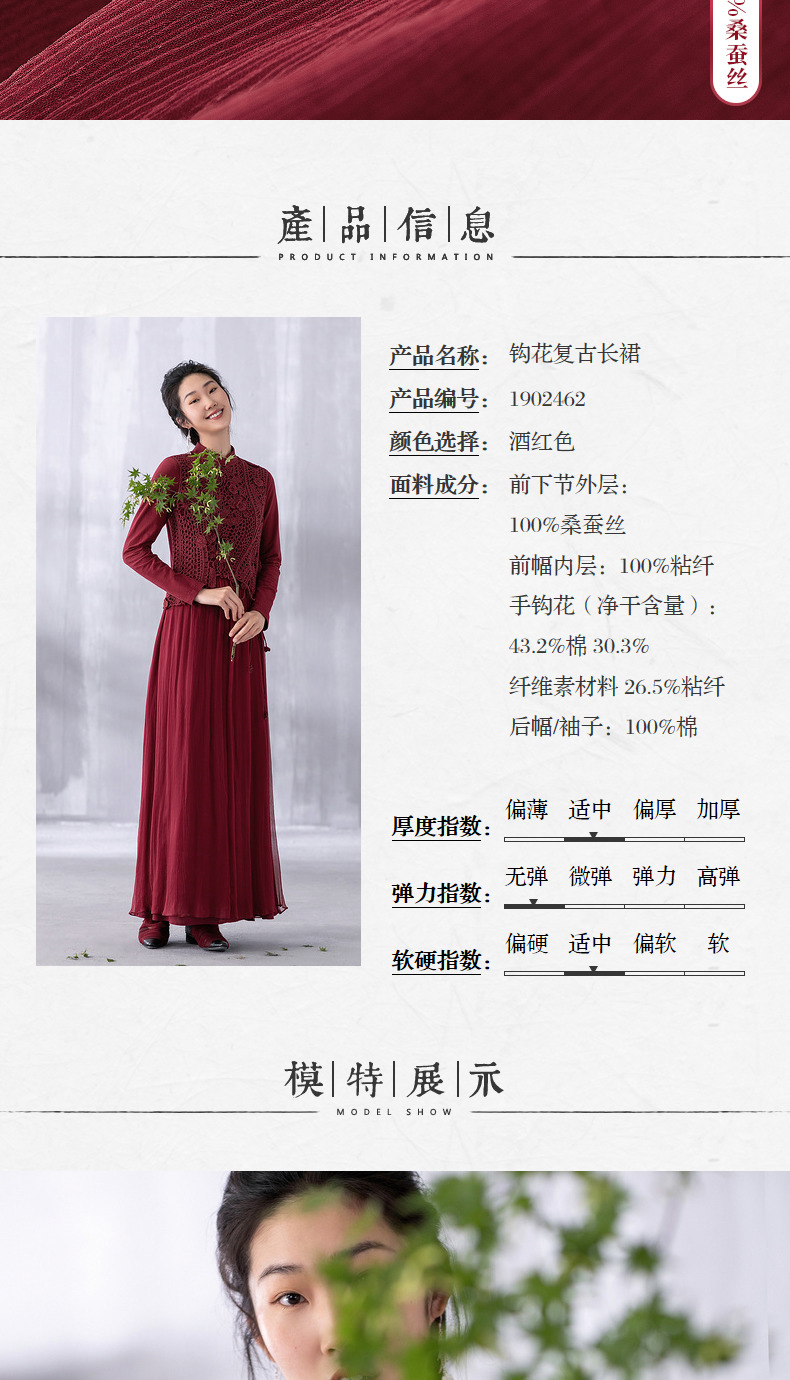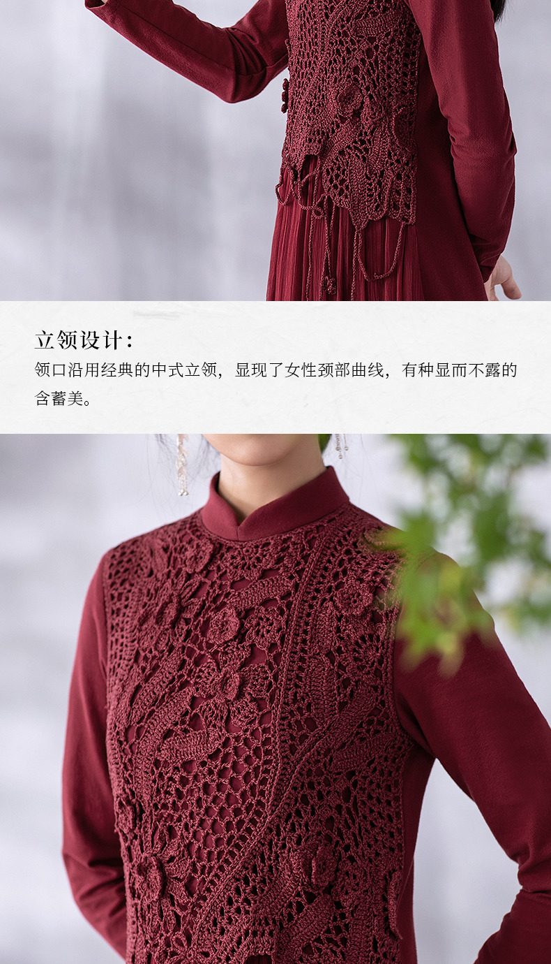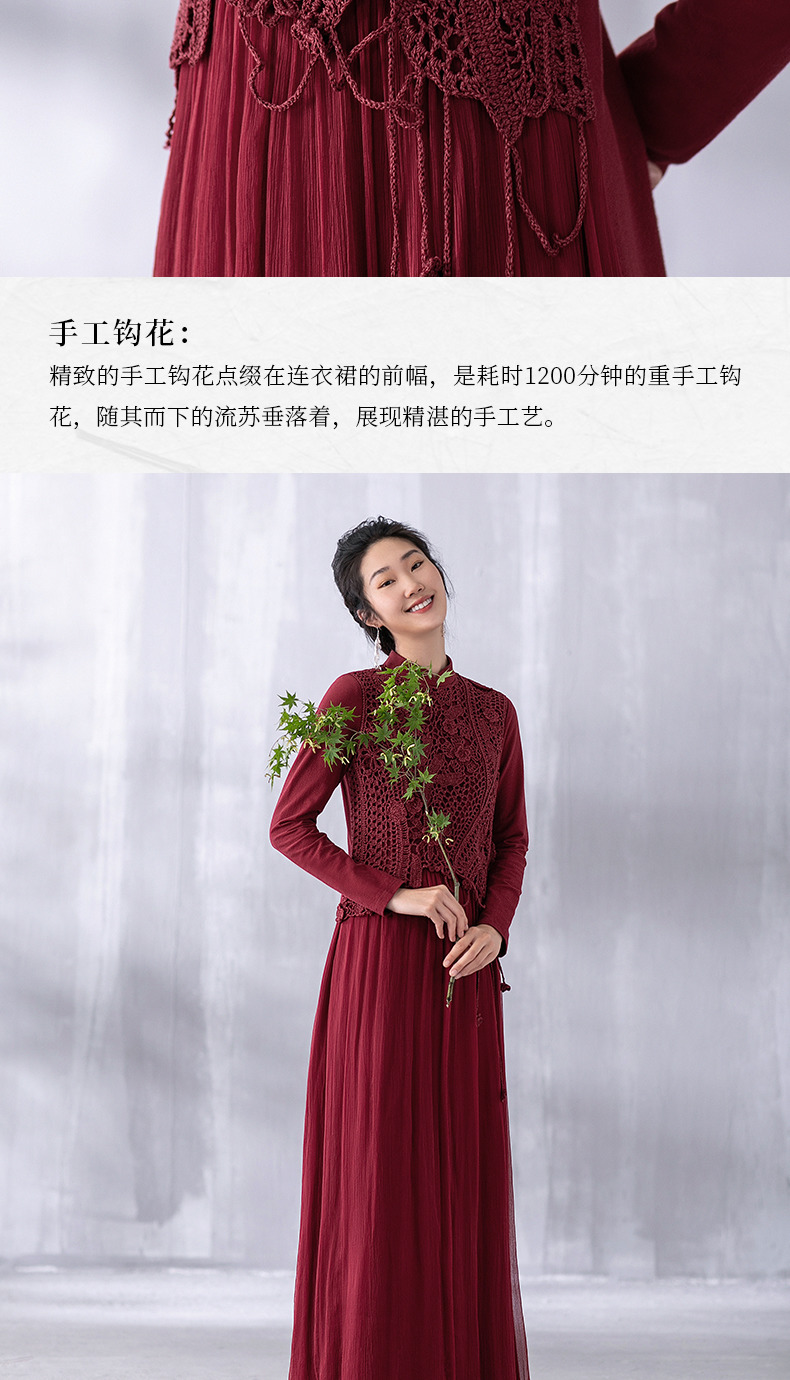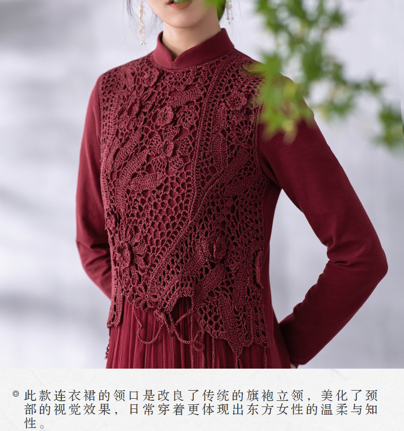 【林栖设计小店】生活在左 手工钩花长袖拼真丝复古显瘦连衣裙子1902462-紫色1961188