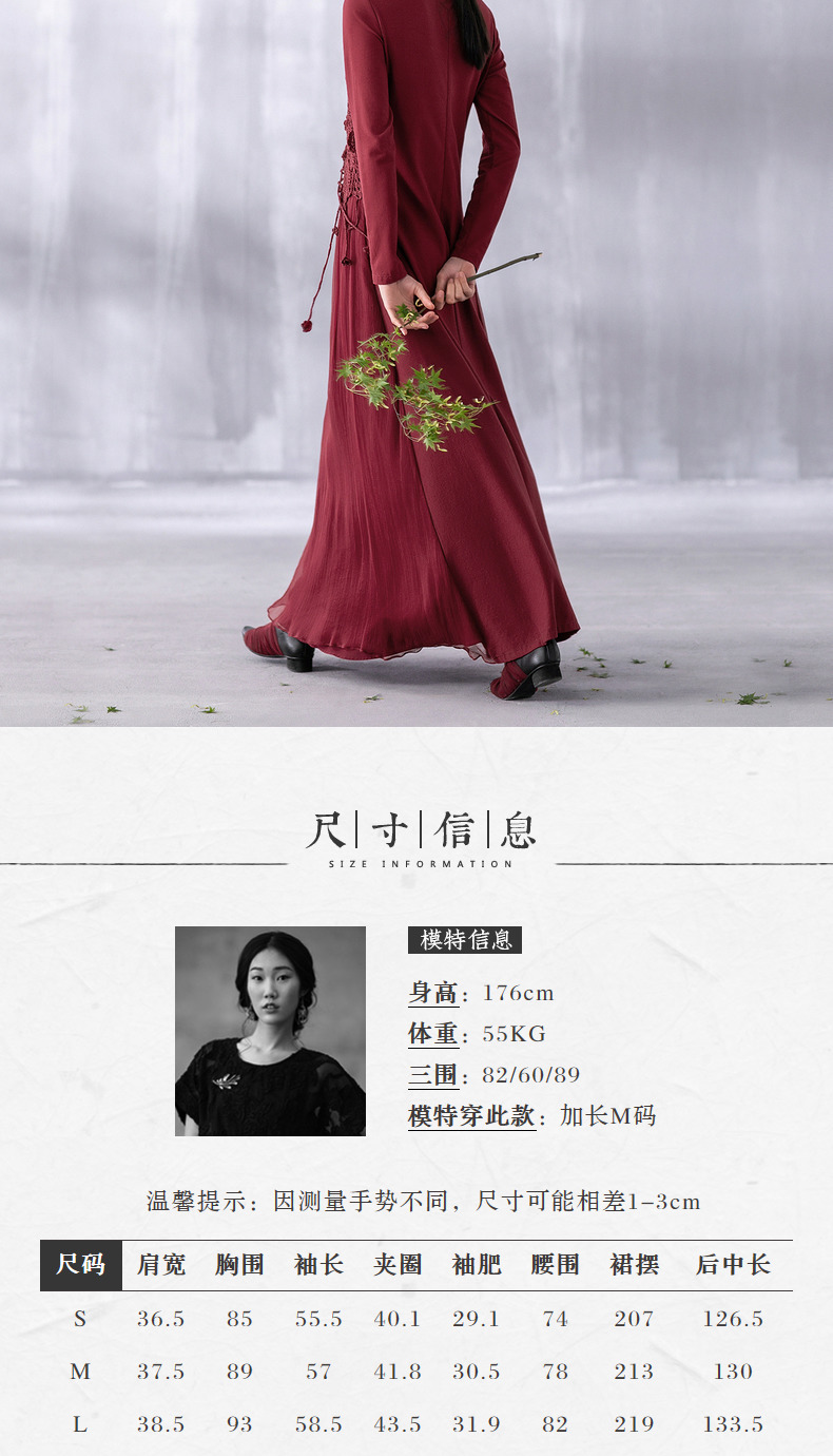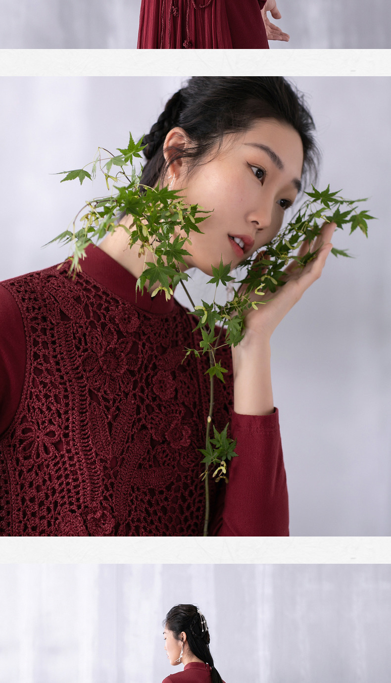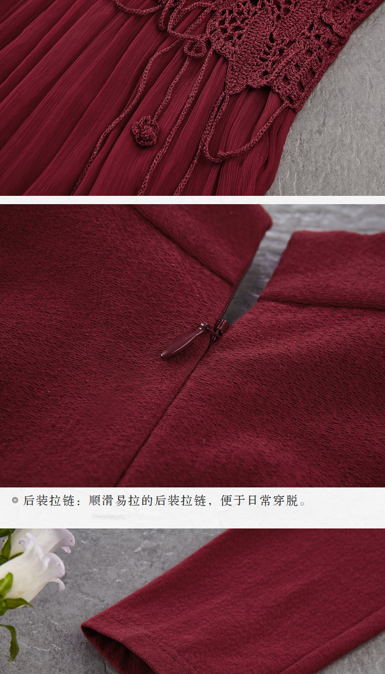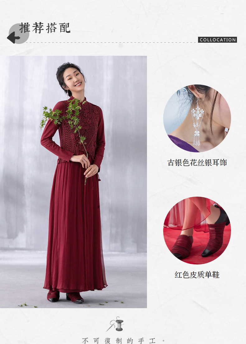 【林栖设计小店】生活在左 手工钩花长袖拼真丝复古显瘦连衣裙子1902462-紫色1961188
