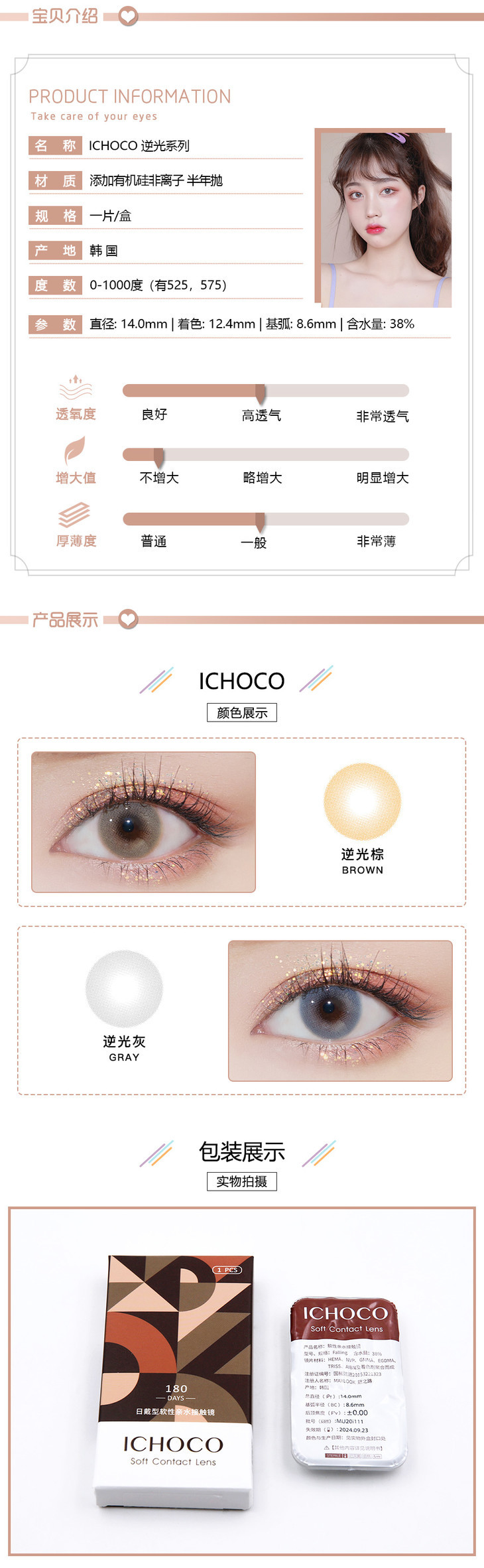 ICHOCO逆光棕/逆光灰半年抛 | 韩国硅水凝胶材质 1副2片
