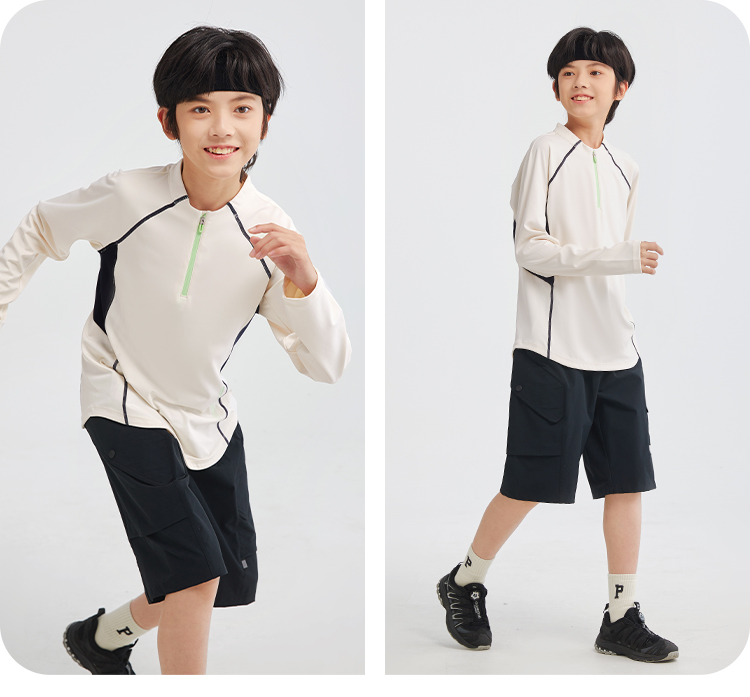 水孩儿童装24秋冬新款儿童弹力打底衫男童时尚保暖舒适上衣女童拼色卫衣