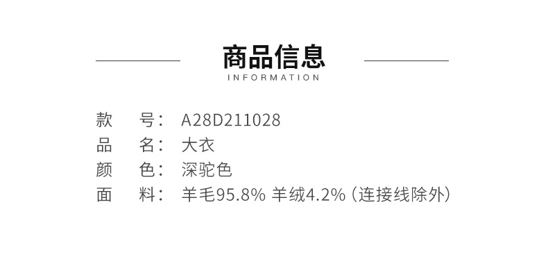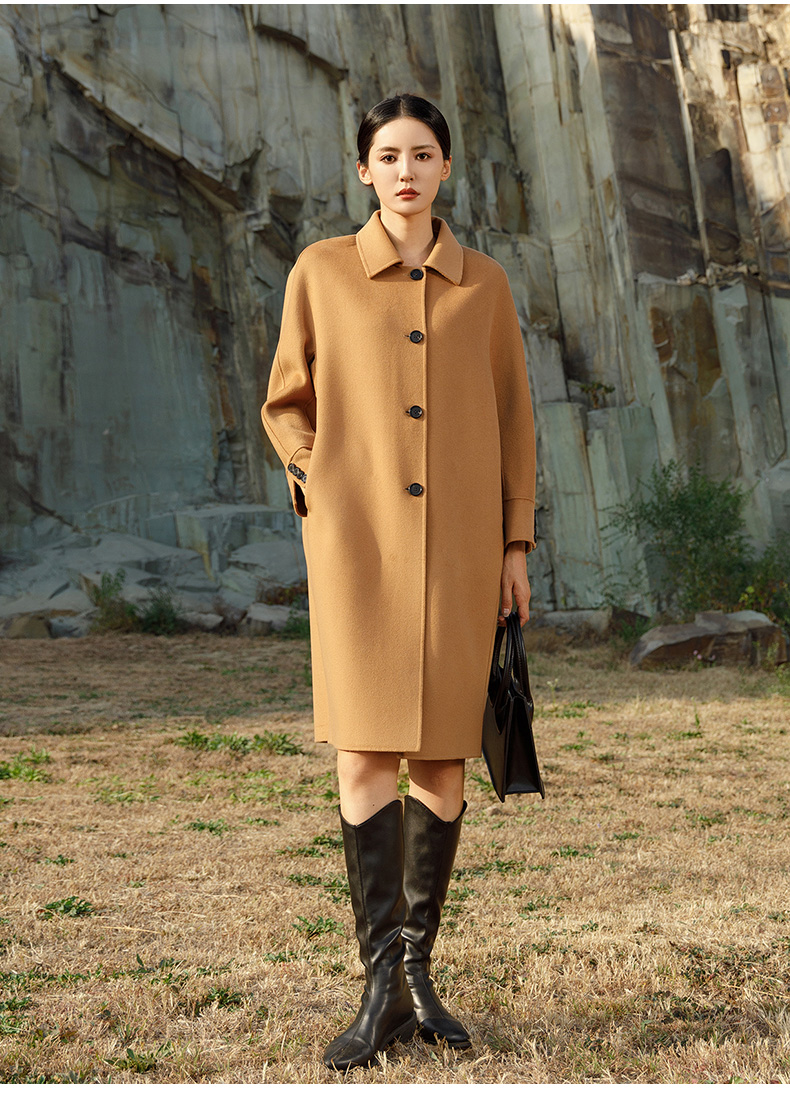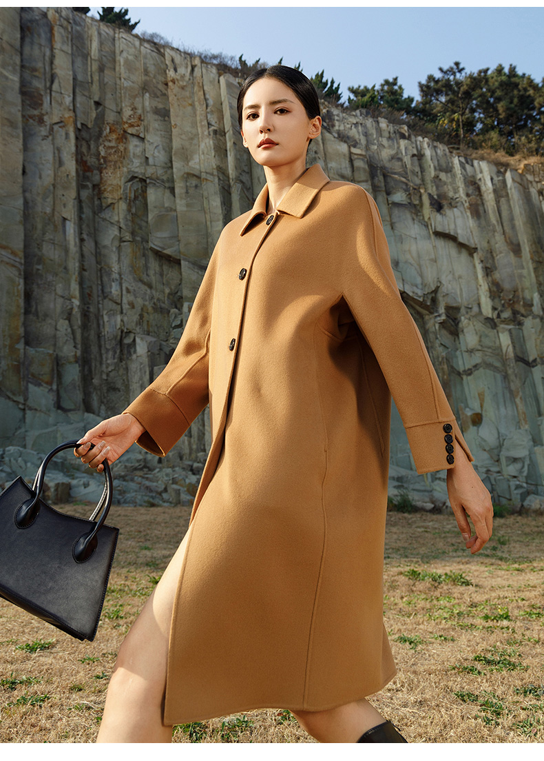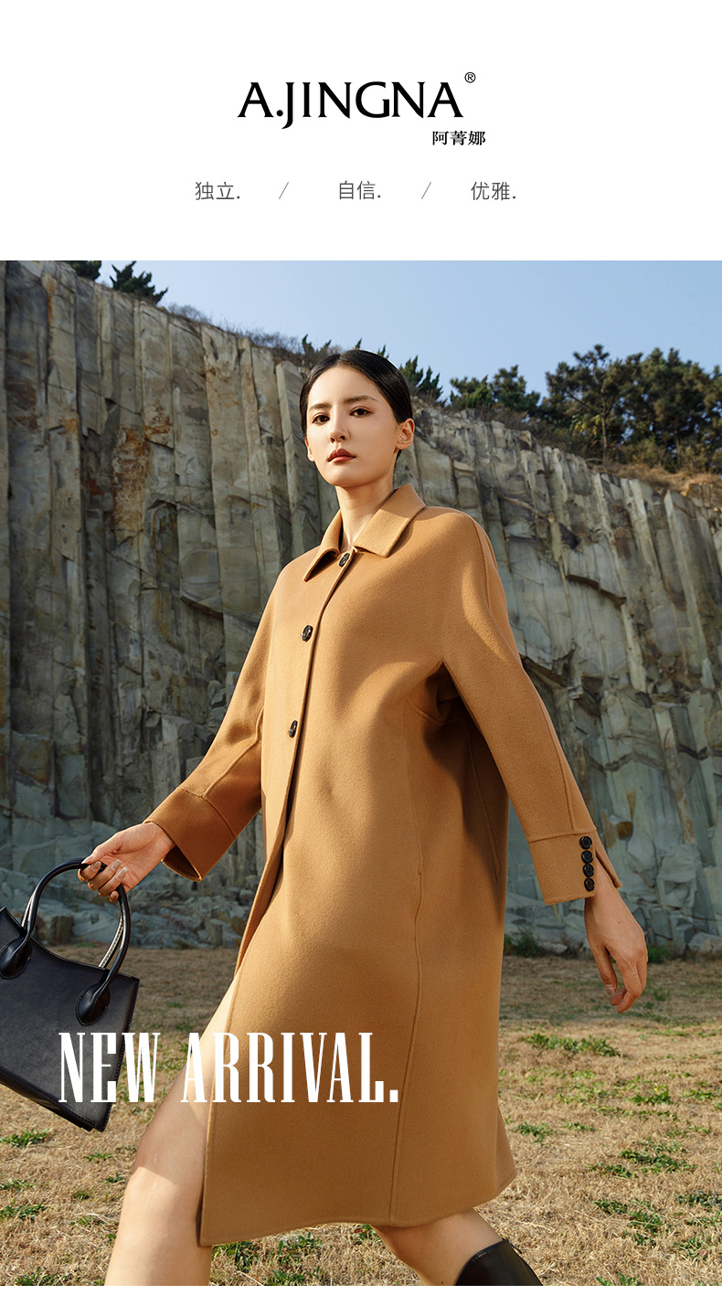 【积分兑换】阿菁娜手工裁剪微宽松简约H型经典双面呢大衣A28D211028