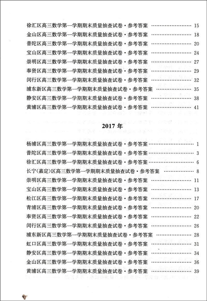 2018-2020年版领先一步上海高考数学一模卷参考答案 文化课强化训练3年合订本 上海市高三第一学期期末质量抽查试卷精编