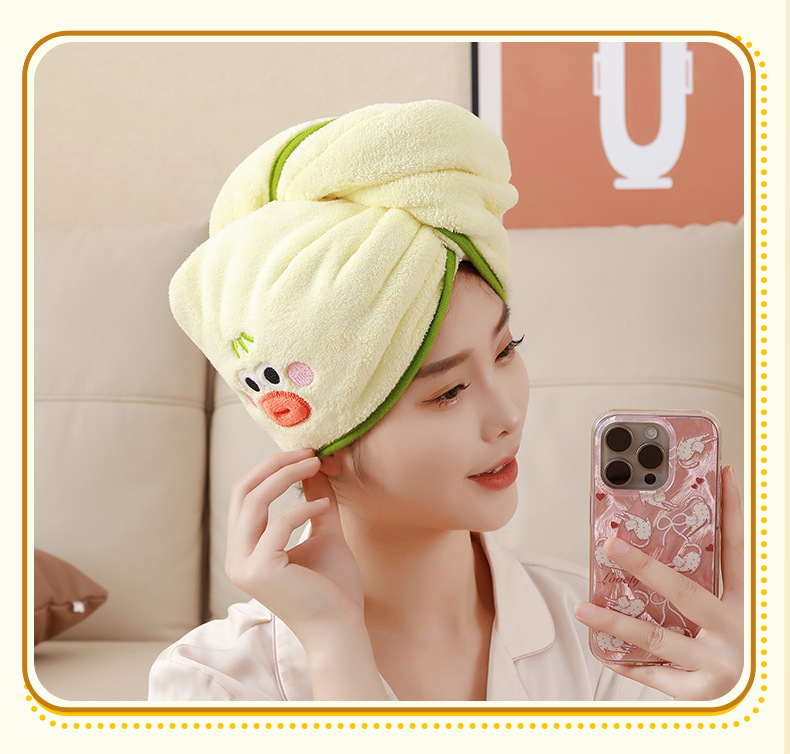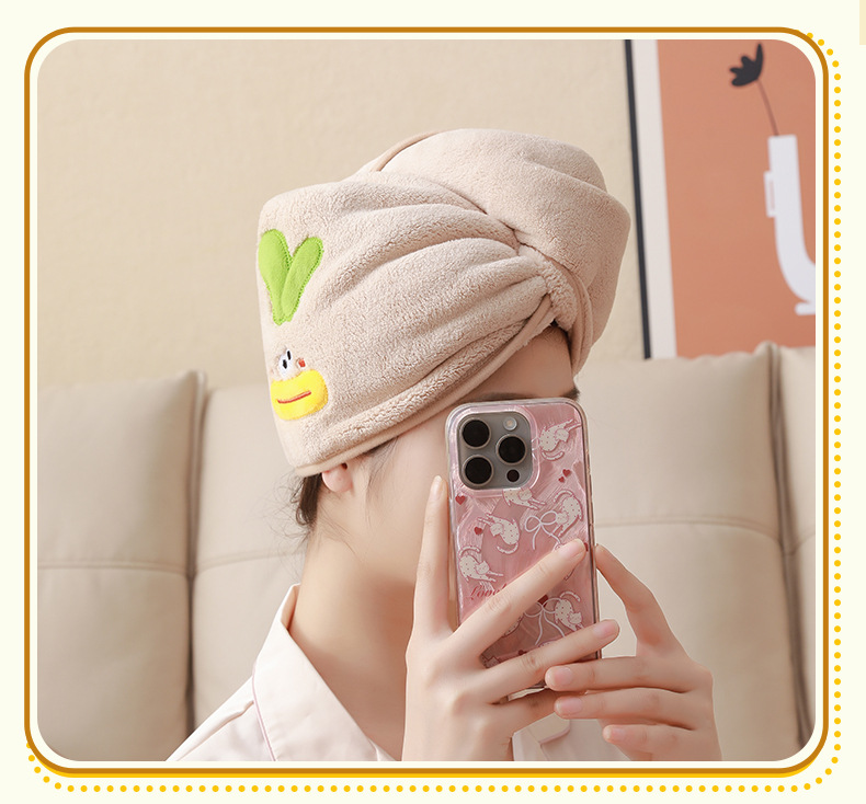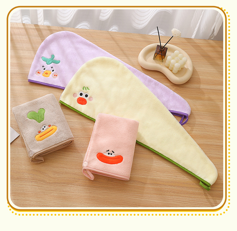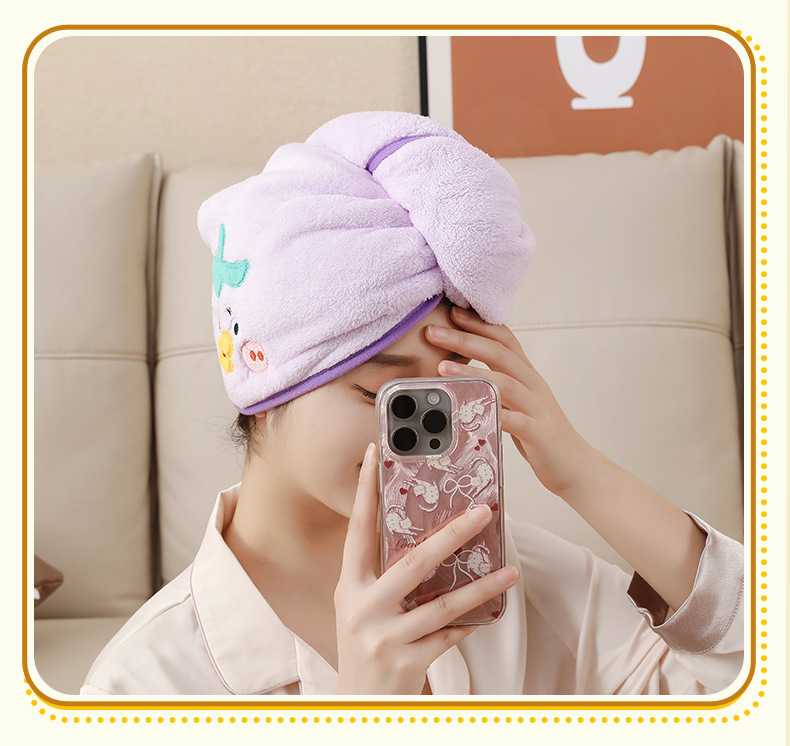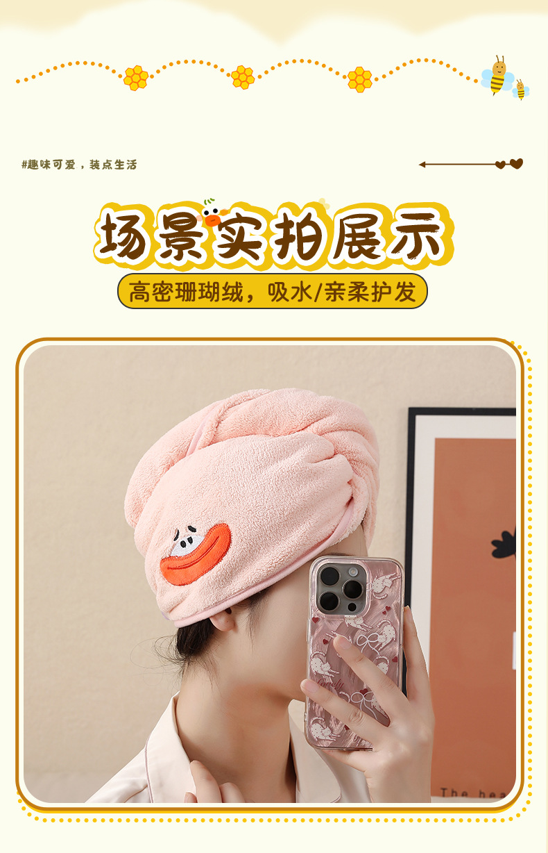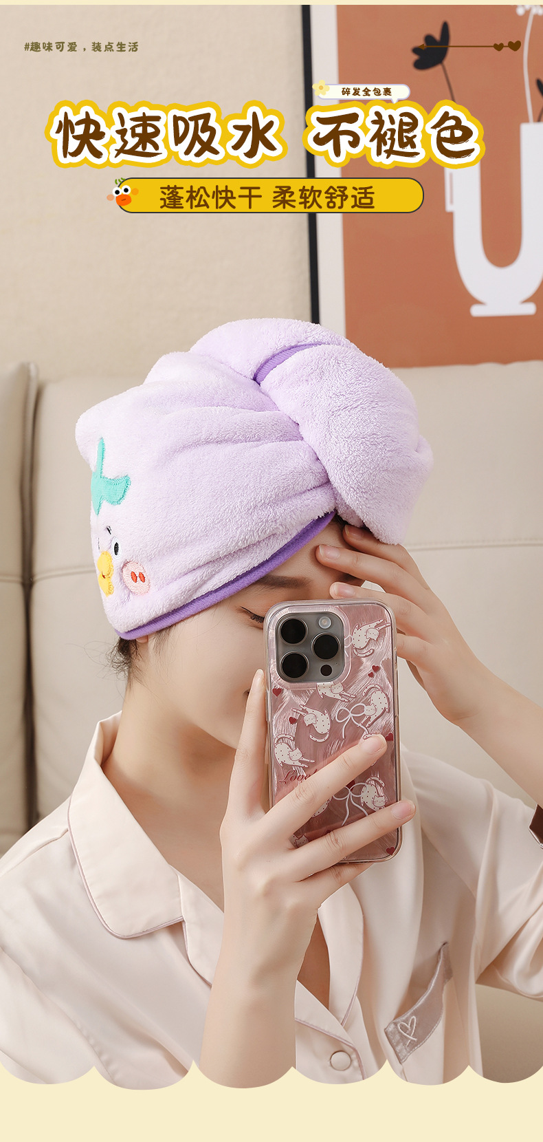【蓬松快干!柔软舒适】ins风创意卡通干发帽女珊瑚绒浴帽吸水速干包头巾儿童可爱干发巾。ry